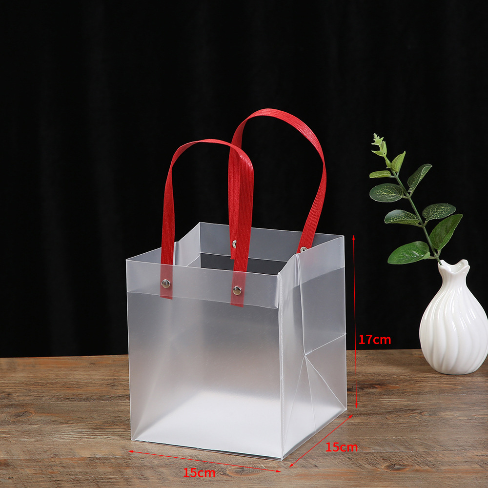 • 큰 빨간색 손잡이 사각 가방: 길이 15*15*높이 17, 투명 색상, 약 15cm~20cm