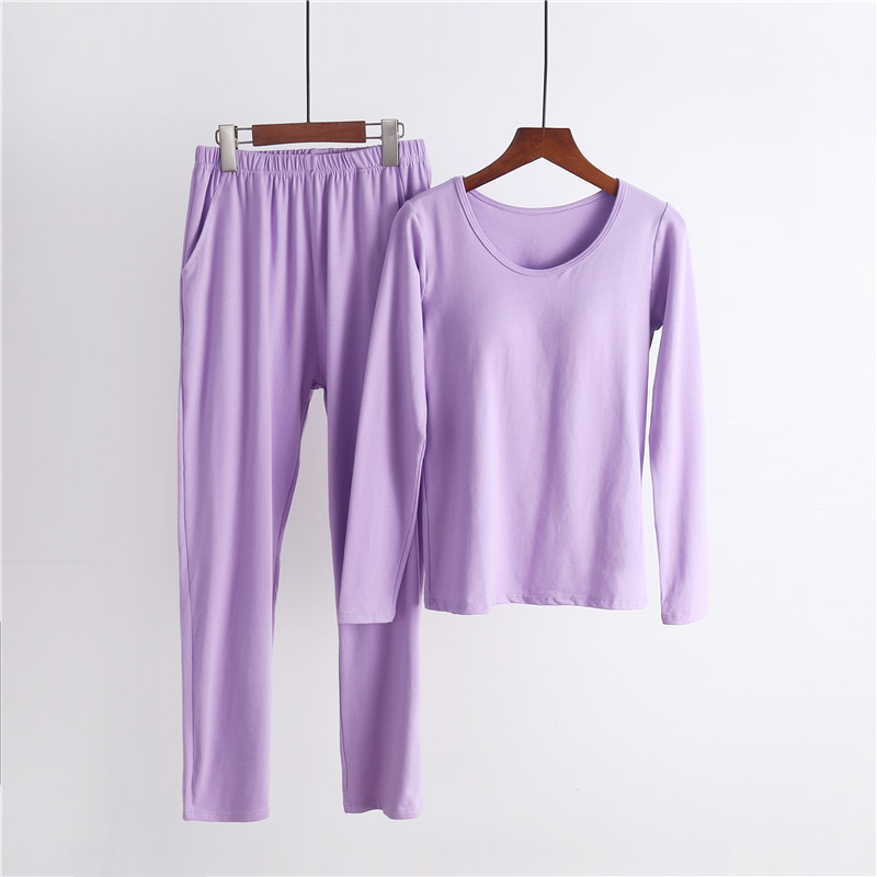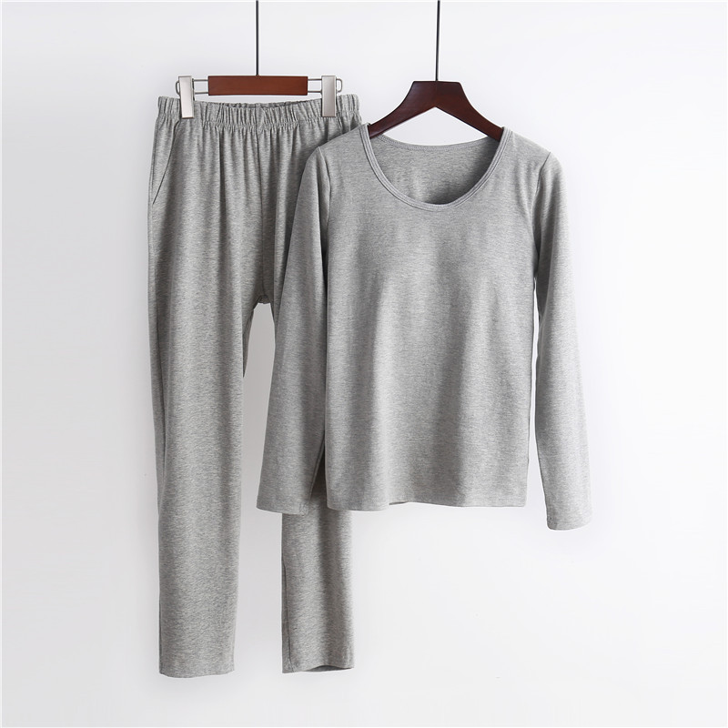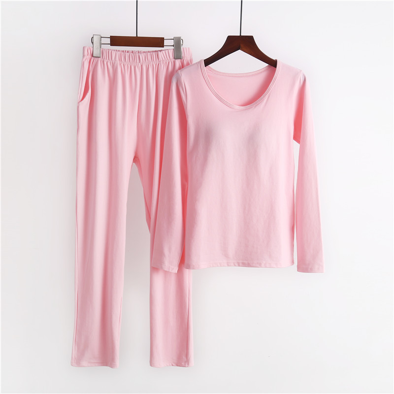 순면 긴 소매 바지 가슴 패드 세트 가을 옷 가을과 겨울 가정복 여자 컵 원피스 잠옷