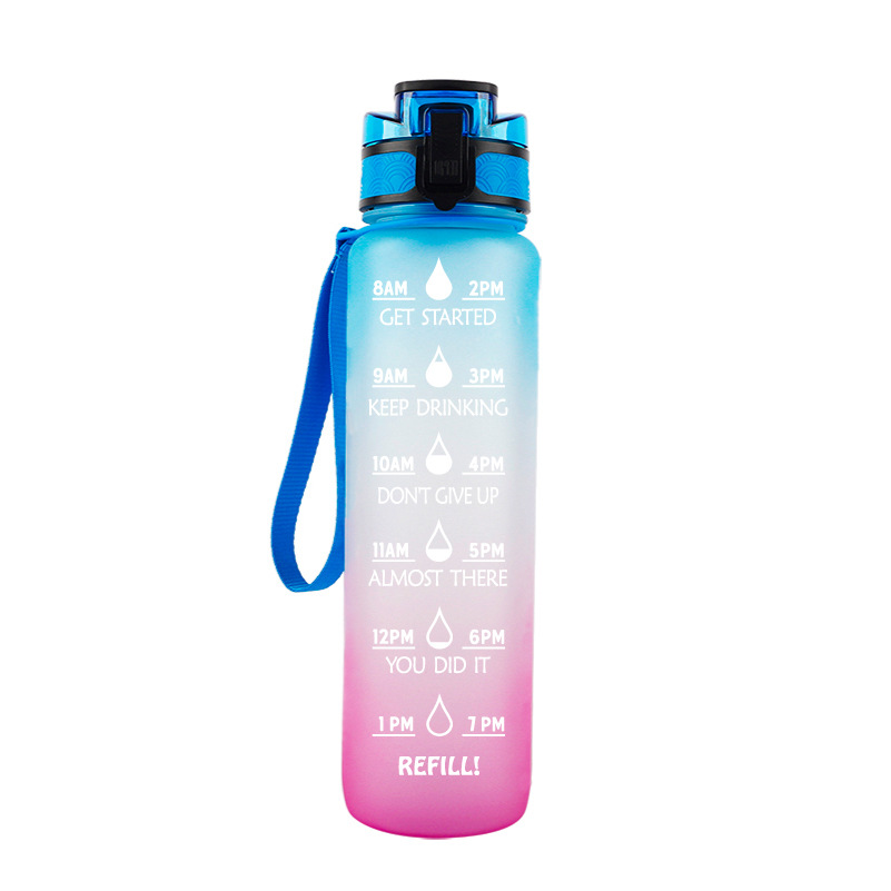 1000ml 플라스틱 공간 컵 트라이탄 소재 그라데이션 대용량 스포츠 물병 손잡이 휴대용 컵 포함