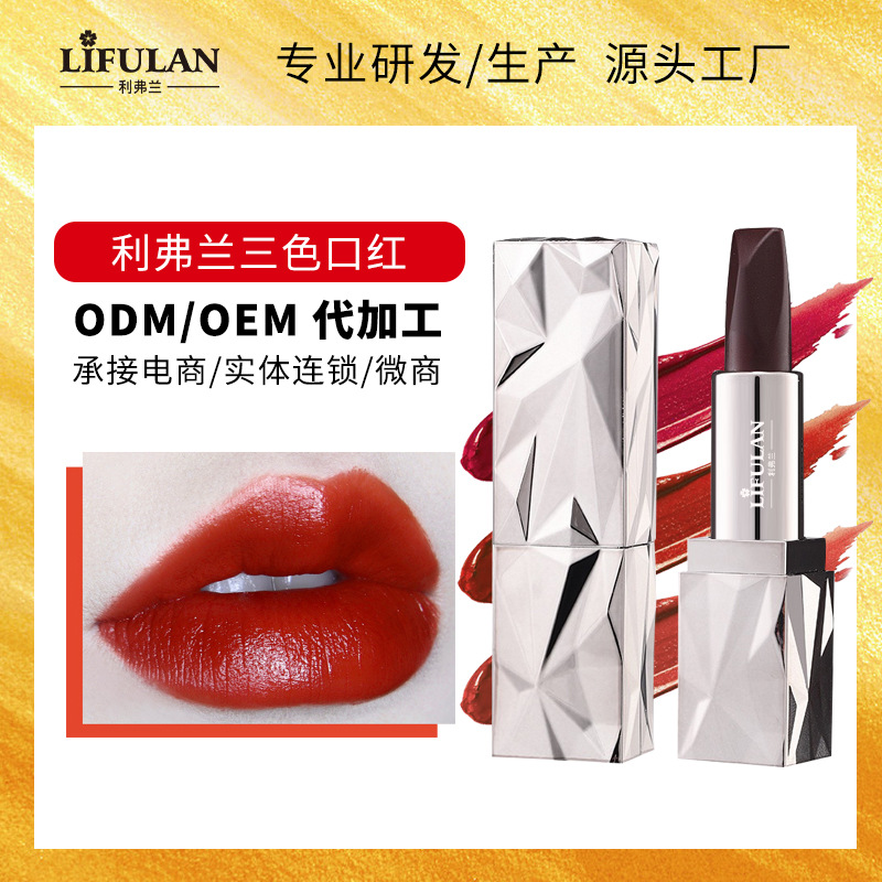 • 网红同款烈焰黑钻玫瑰两面三色口红 哑光持久不易掉色唇膏代加工