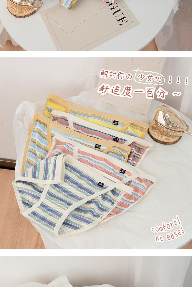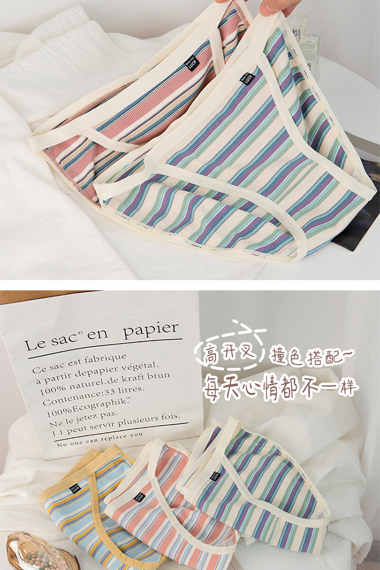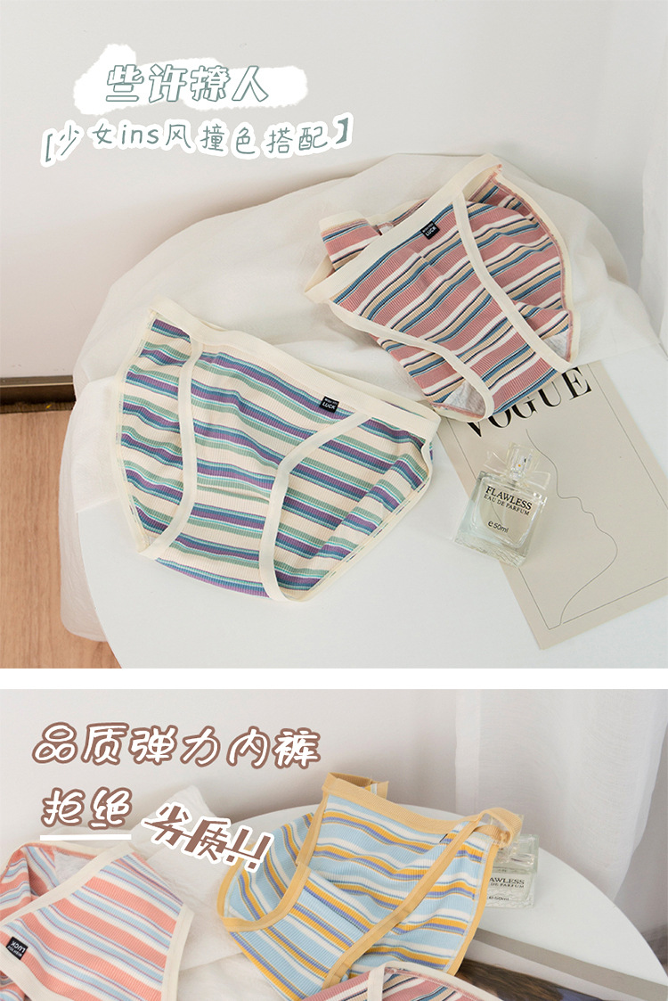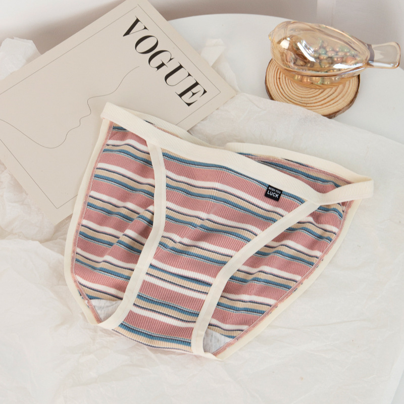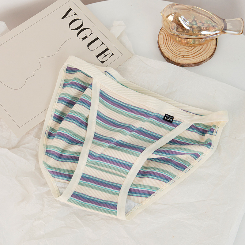 베트남 여자 브리프 대조 색상 줄무늬 소녀 해군 스타일 경례 스포츠 섹시한 속옷 여성 LUCK