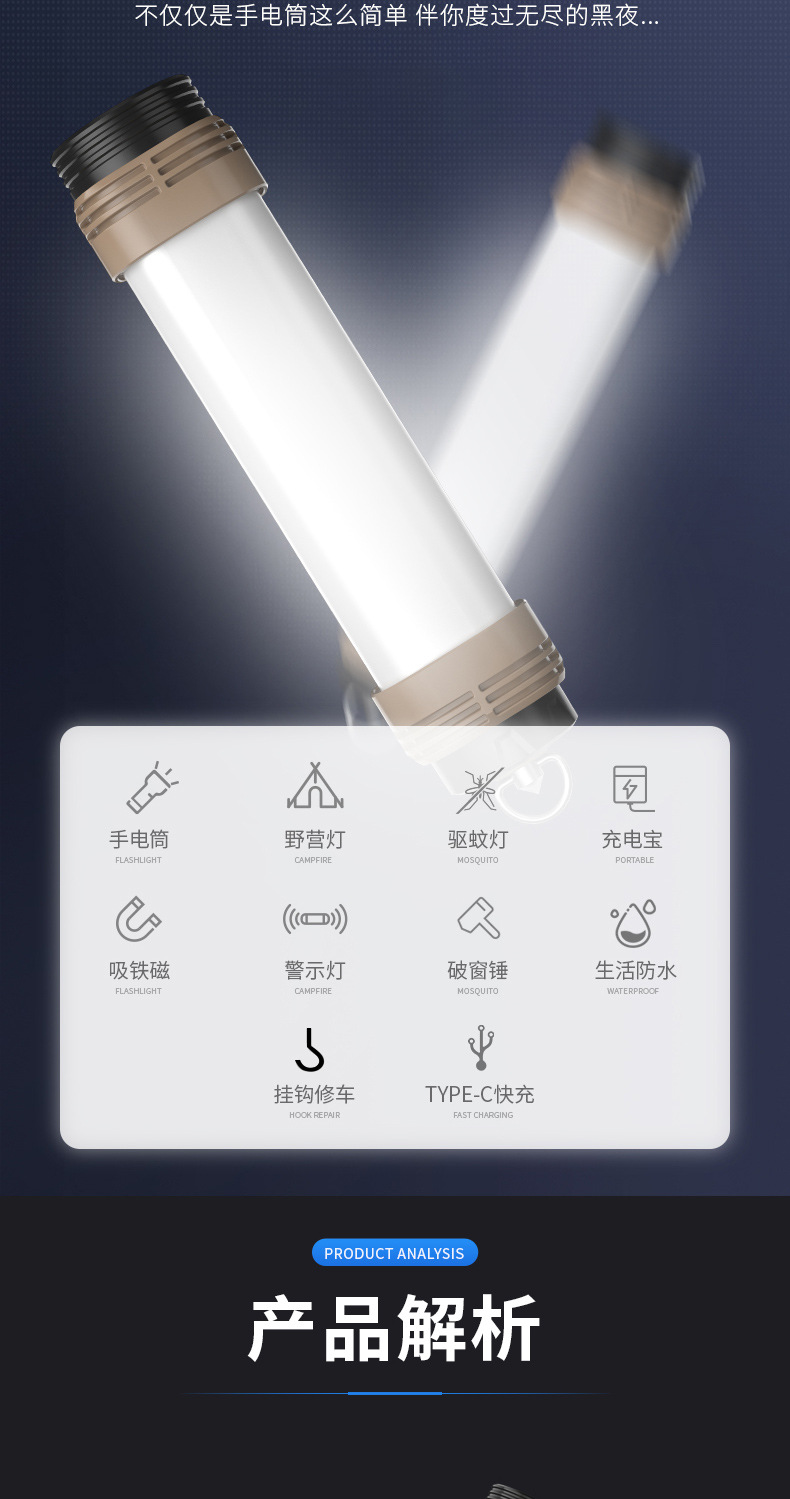 다기능 강력 조명 작업등, 넓은 조명 범위, 강력한 자석, 90도 회전 후크, 비상용 창문 파괴 망치, 캠핑 램프스토어 가기