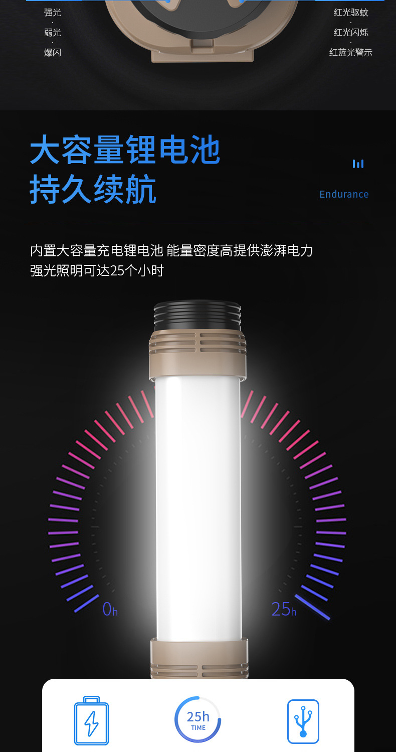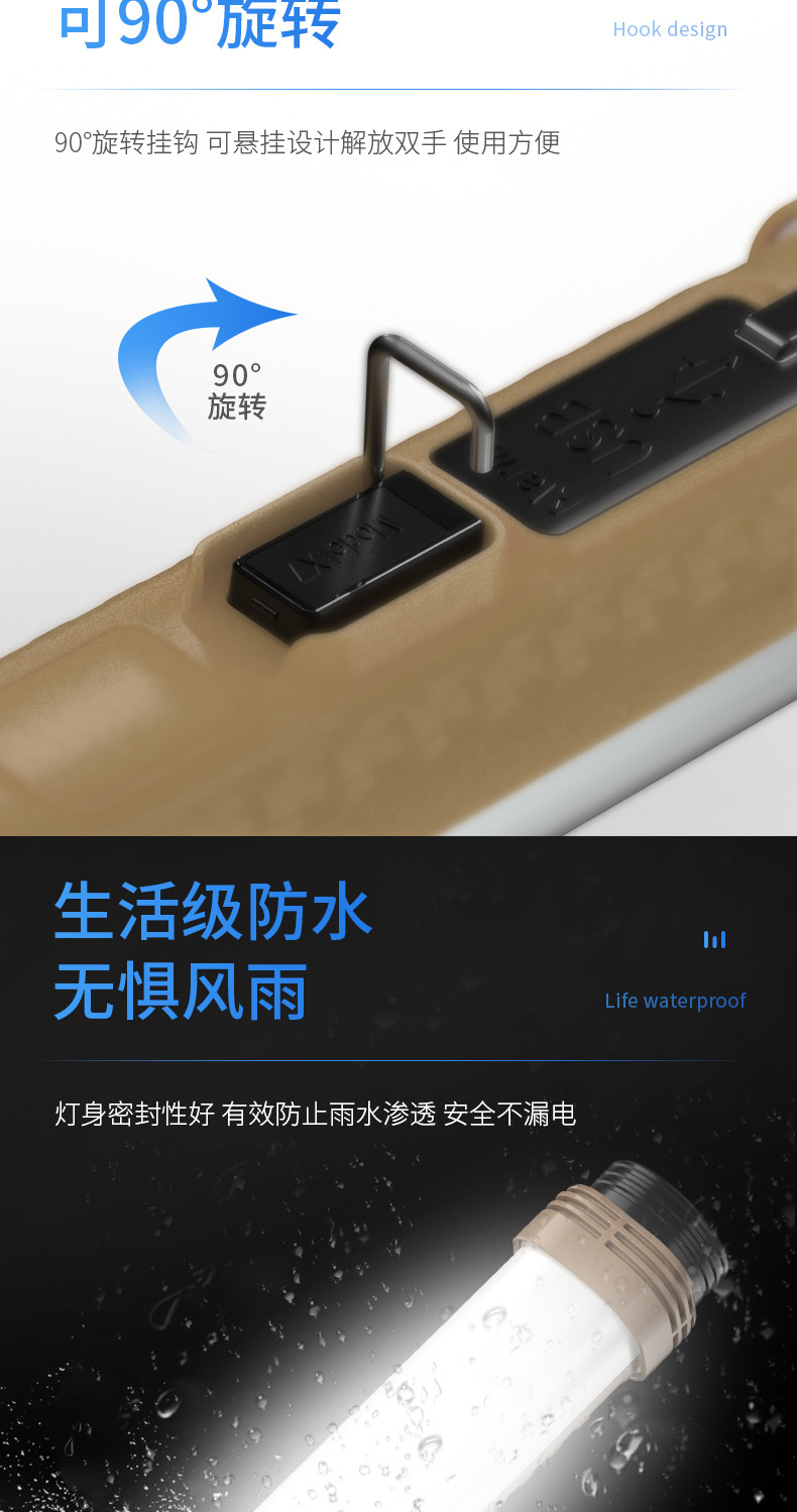 다기능 강력 조명 작업등, 넓은 조명 범위, 강력한 자석, 90도 회전 후크, 비상용 창문 파괴 망치, 캠핑 램프