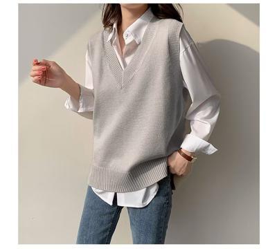 봄과 가을 새로운 느슨한 풀오버 모든 매치 게으른 스타일 V-넥 조끼 민소매 니트 조끼 여성용 스웨터스토어 가기