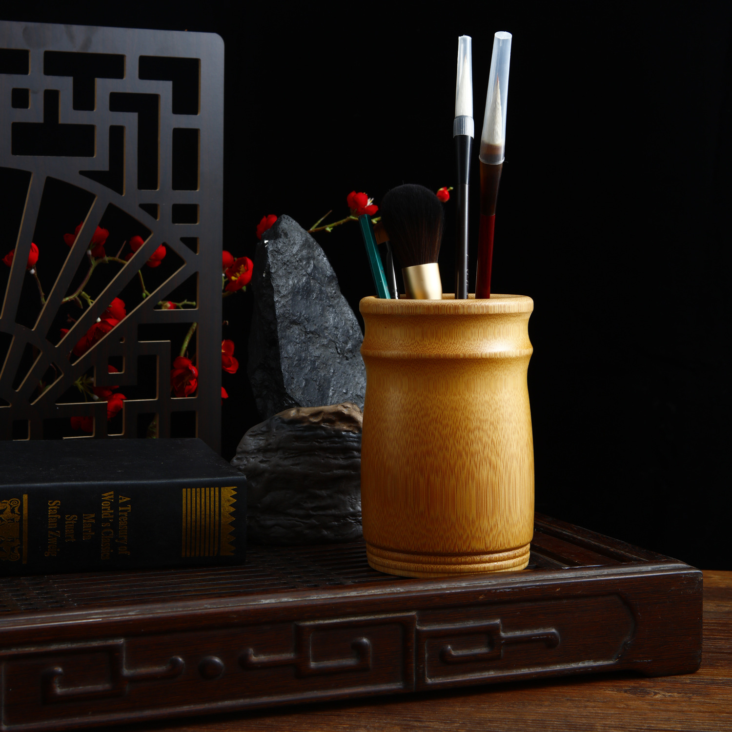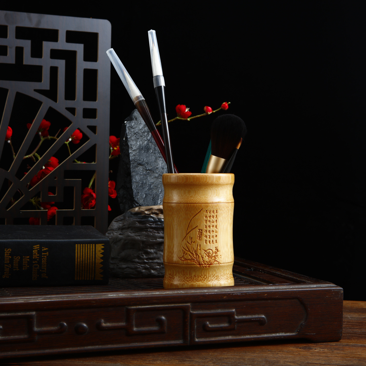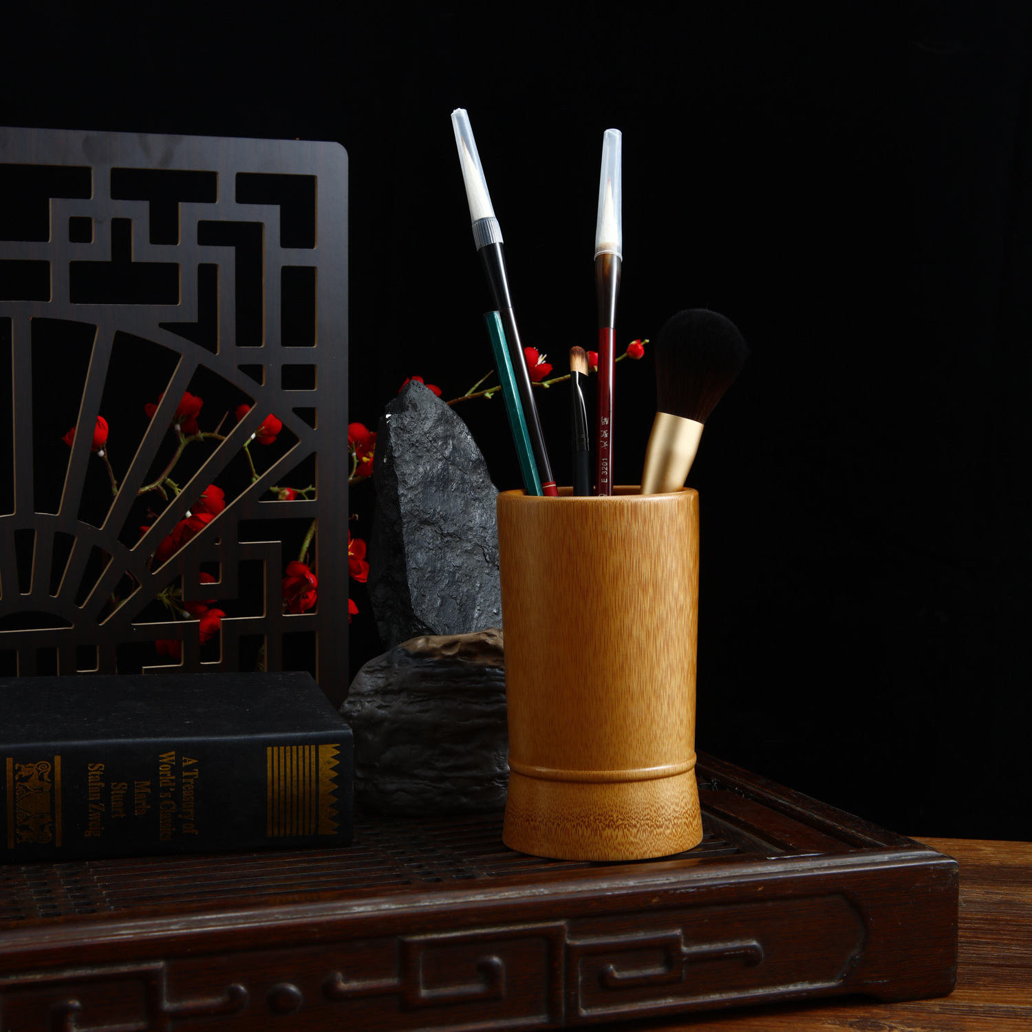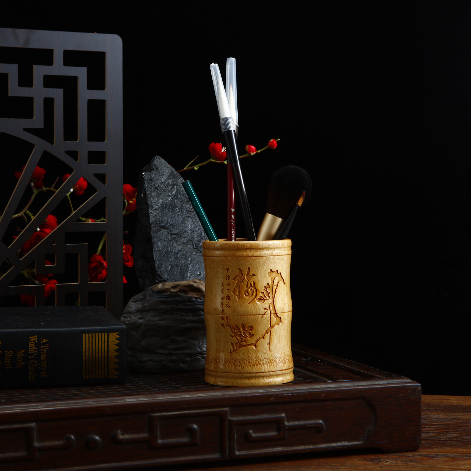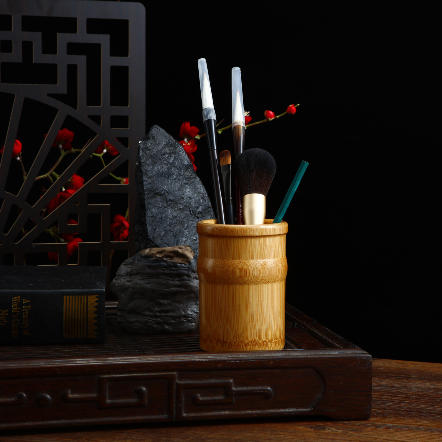 • 대나무 펜 홀더 13 매화 높이 13 직경 8-10