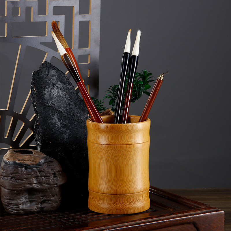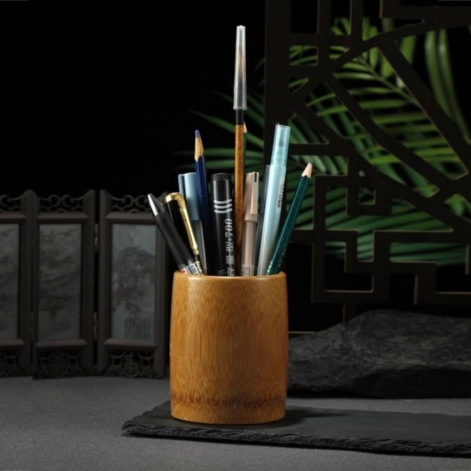 천연 대나무 및 나무 펜 케이스 다기능 고급 레트로 라운드 펜 배럴 중국식 사무실 공부방 장식품 보관함스토어 가기