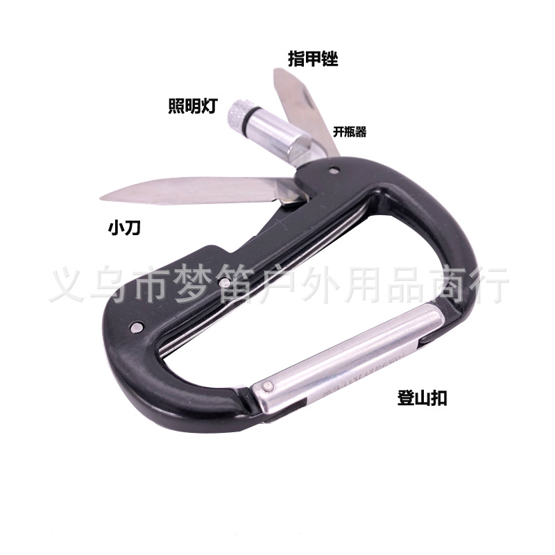 【商品功能】:登山扣带小刀,开瓶器带指甲锉, 登山扣 LED灯
