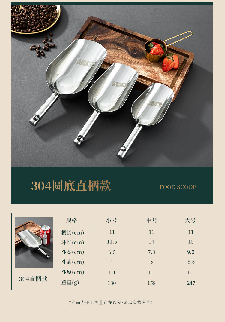 304 스테인리스 스틸 주걱, 얼음 주걱, 밀가루 주걱, 음식 주걱, 쌀 주걱, 얼음 조각 주걱, 건과일 주걱, 다용도 주걱, 애완동물 사료 주걱