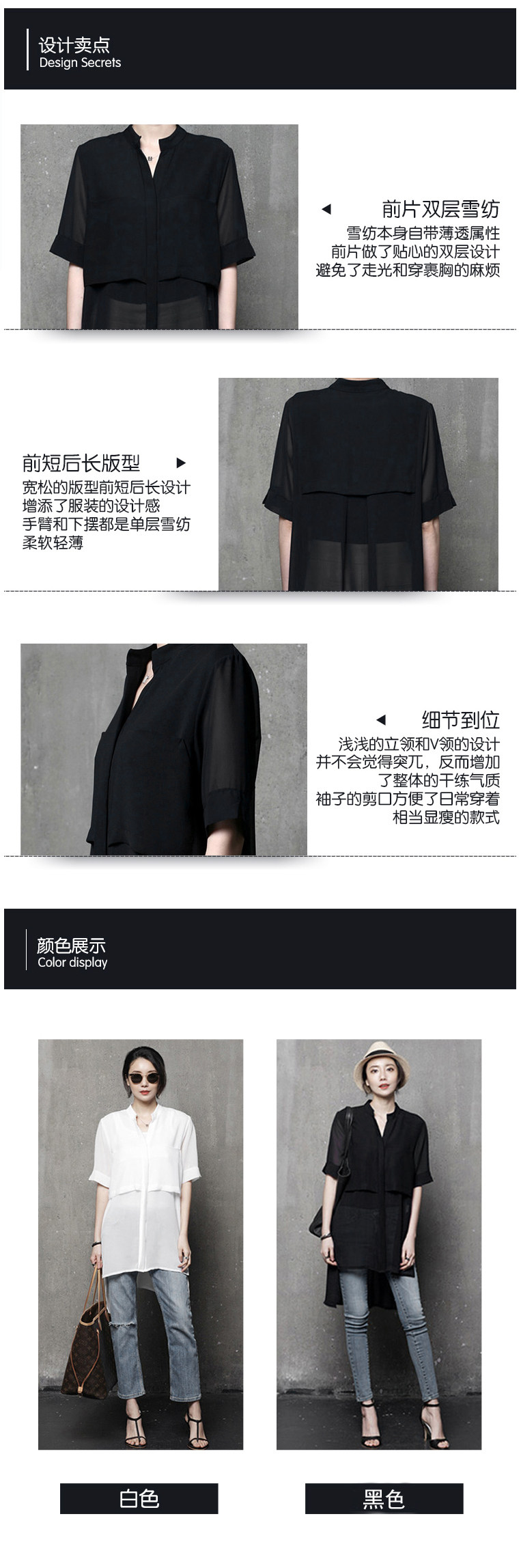 2026 여름 신상 한국 스타일 중간 길이 대형 여성복 루즈핏 반팔 쉬폰 셔츠 여성 블라우스스토어 가기