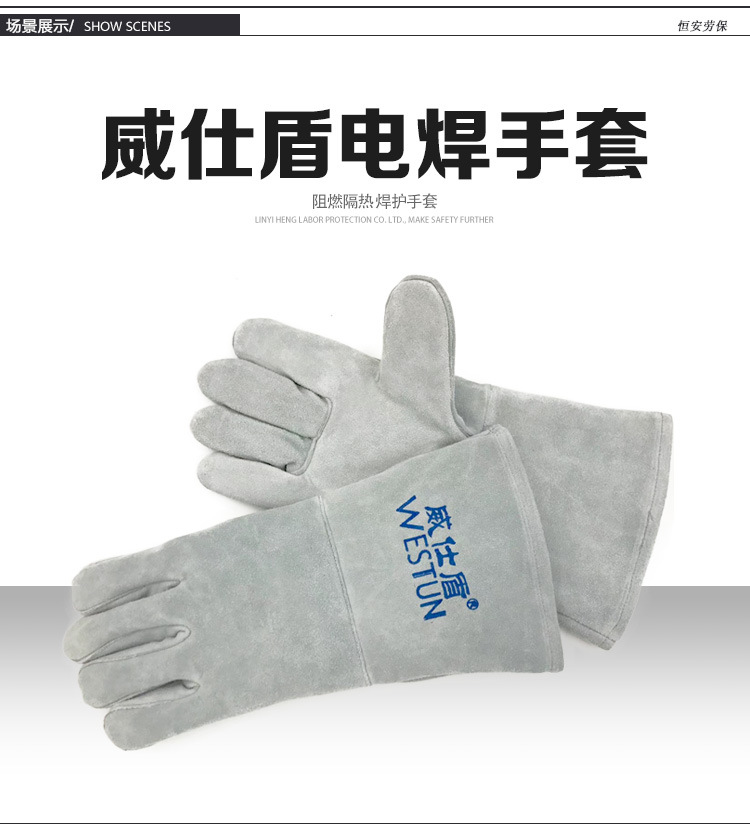 Weishi 방패 G-2116 단층 용접 장갑 수동 용접 장갑 고온 용접기 장갑 소 2 층 코어 가죽