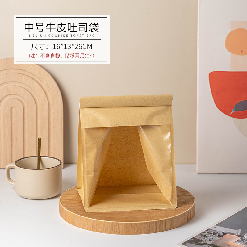 • 1개; 중간 사이즈 순수 크라프트지 지퍼 토스트 봉투 포장 6-8조각 [1500개/상자]