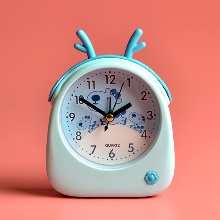 만화 동물 알람 시계 귀여운 성격 뿔 데스크탑 어린이 학생 침대 옆 알람 시계 캔디 컬러 장식 책상 시계스토어 가기