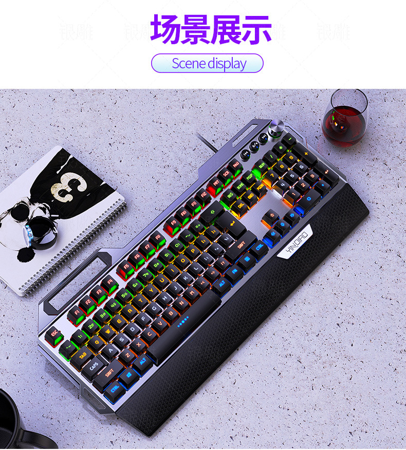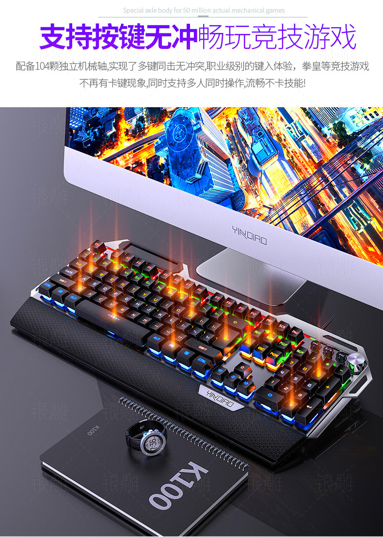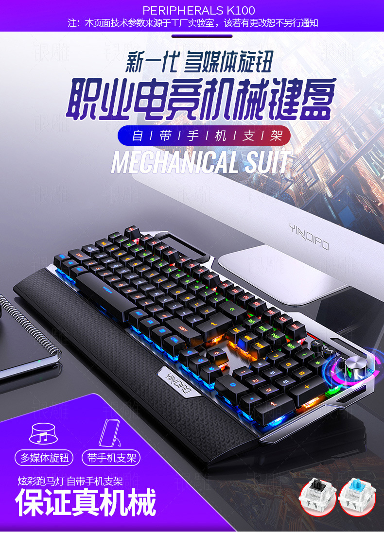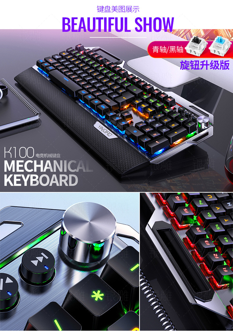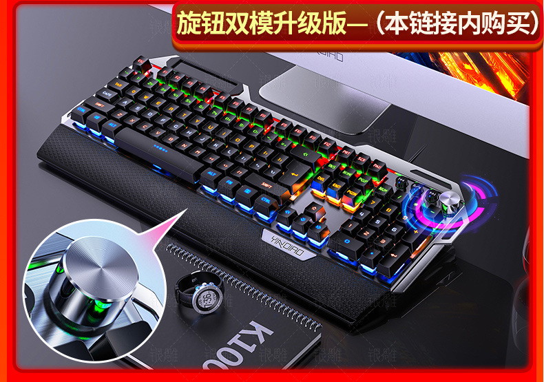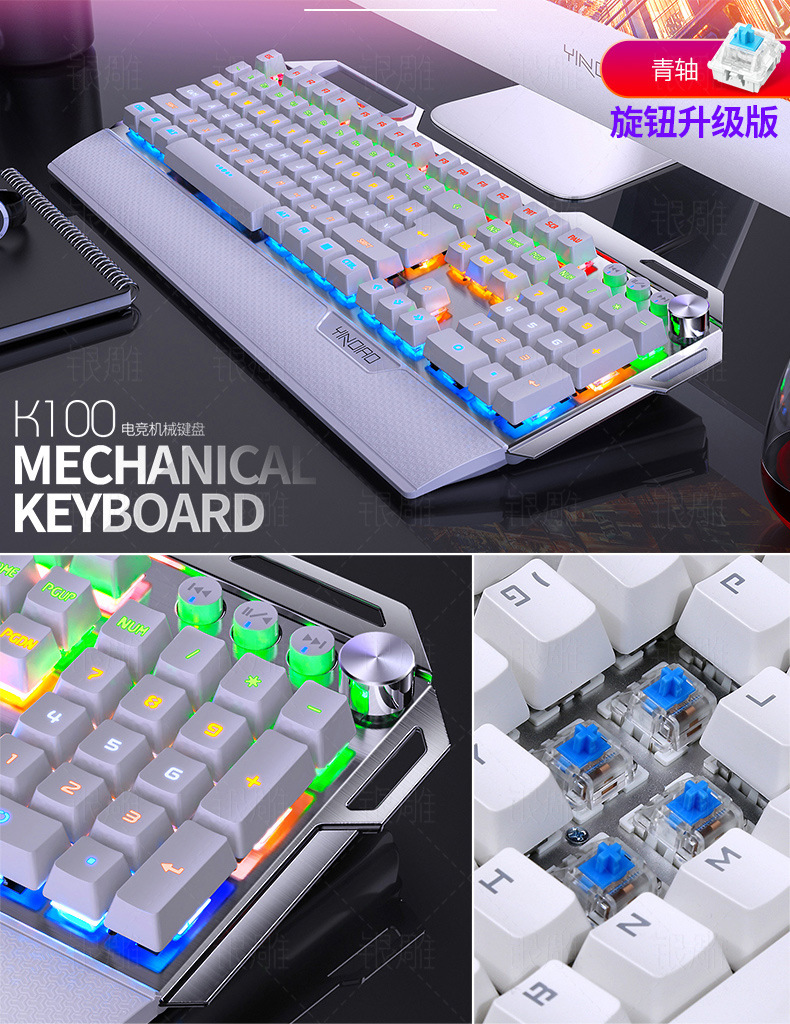 실버 조각 K100 금속 실제 기계 키보드 손 노브 게임 녹색 샤프트 유선 USB 아마존 크로스 보더 도매