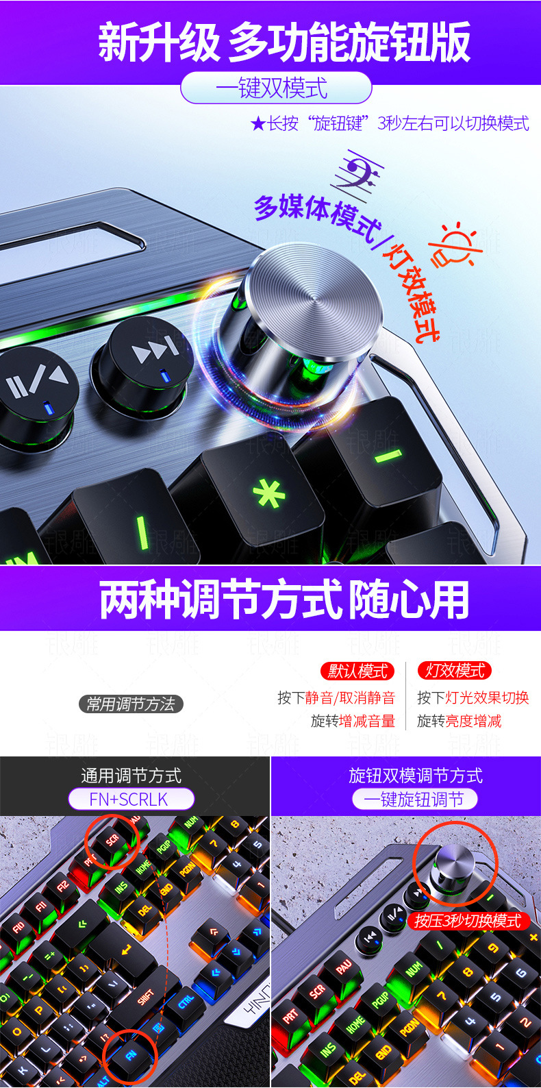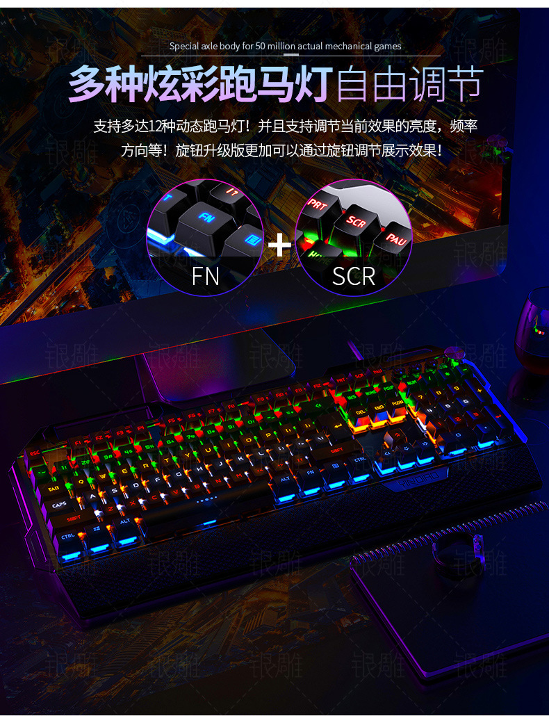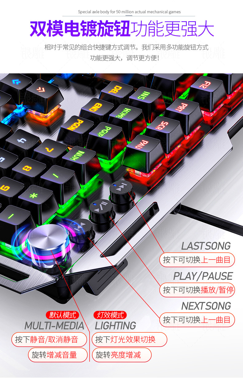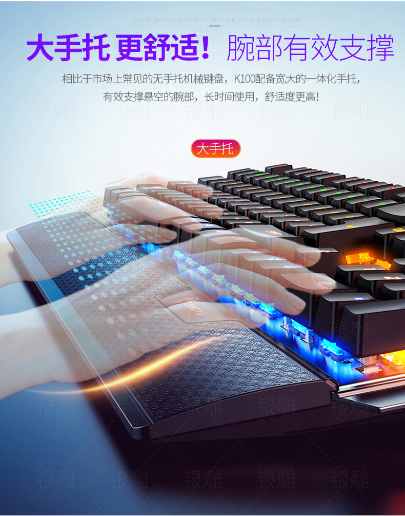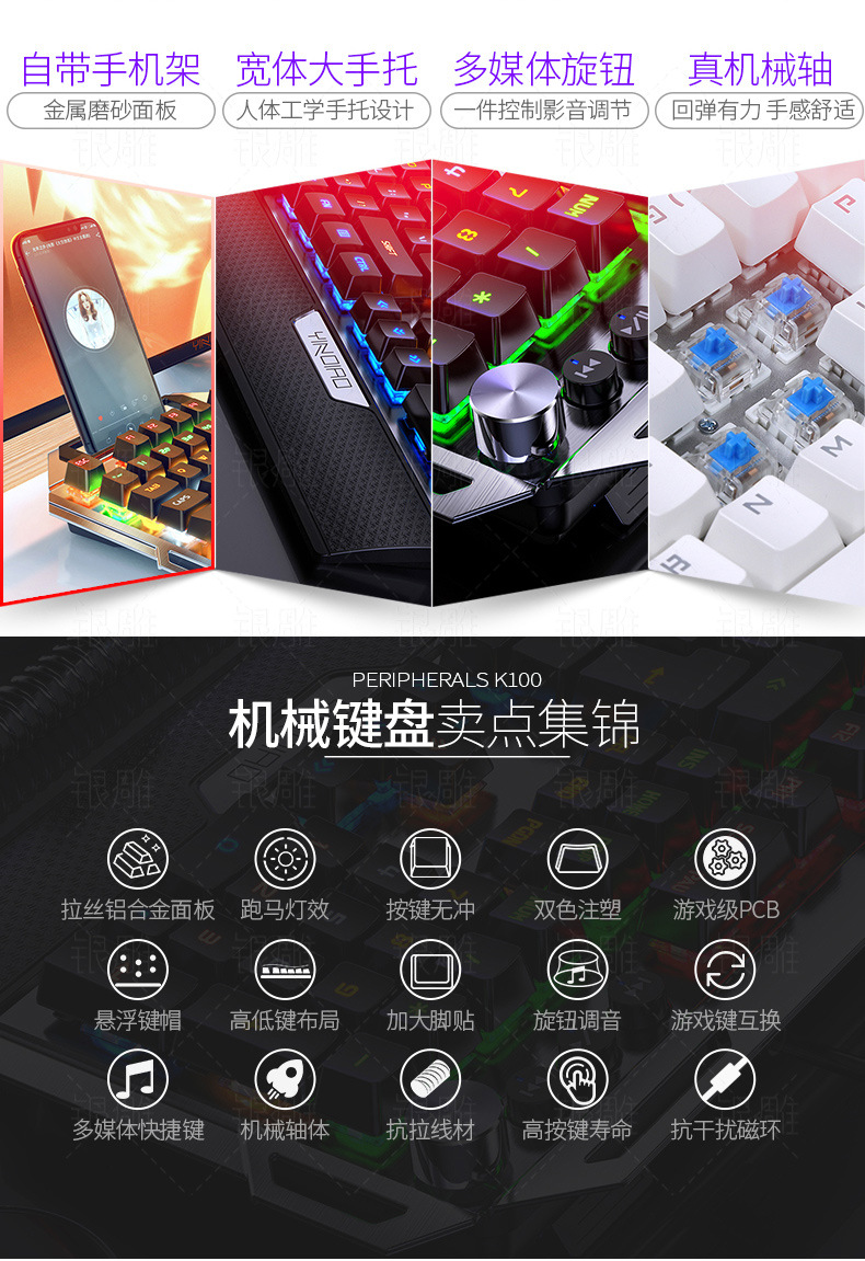 실버 조각 K100 금속 실제 기계 키보드 손 노브 게임 녹색 샤프트 유선 USB 아마존 크로스 보더 도매