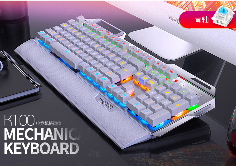 실버 조각 K100 금속 실제 기계 키보드 손 노브 게임 녹색 샤프트 유선 USB 아마존 크로스 보더 도매스토어 가기