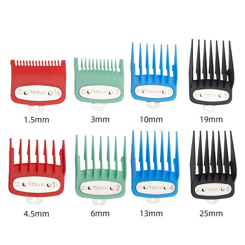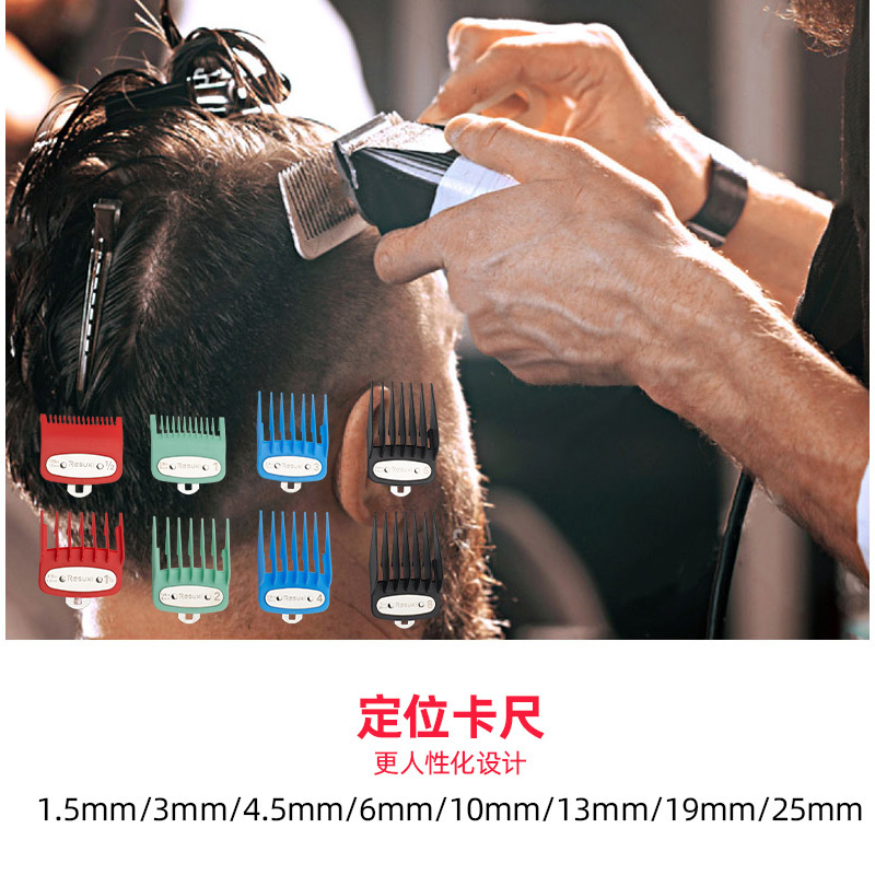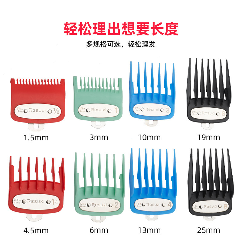 RESUXI 남성용 이발기 액세서리 컬러풀 8종 세트 리미트 빗 오일 헤드 전기 이발기 철판 포함 저소음 디자인