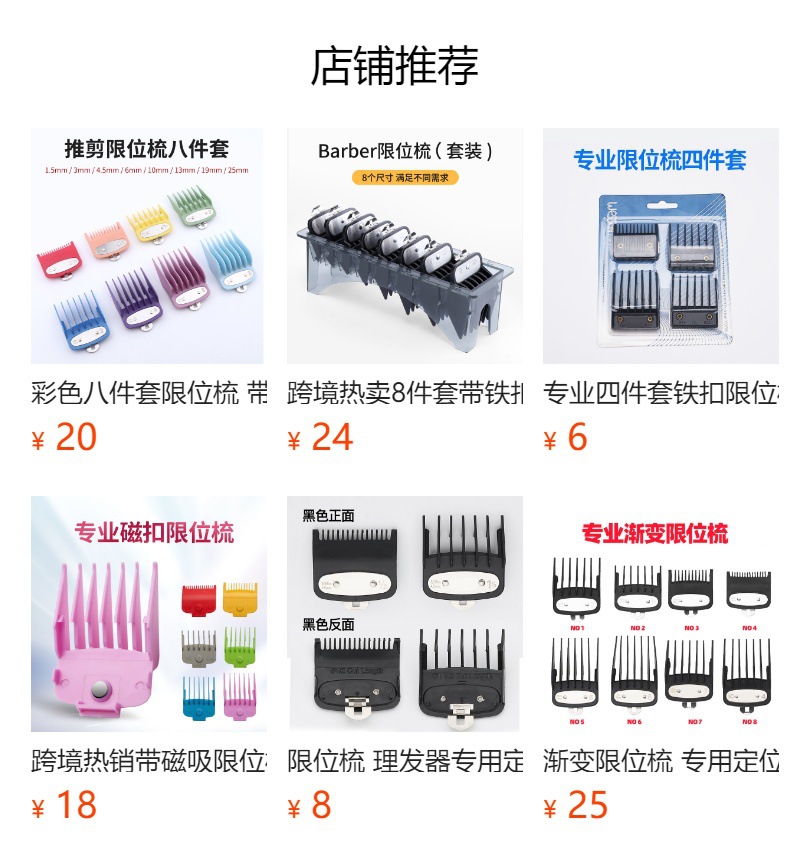 RESUXI 남성용 이발기 액세서리 컬러풀 8종 세트 리미트 빗 오일 헤드 전기 이발기 철판 포함 저소음 디자인스토어 가기