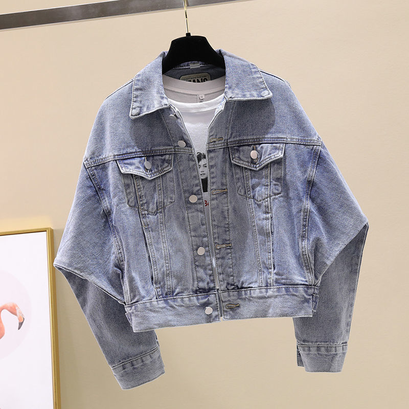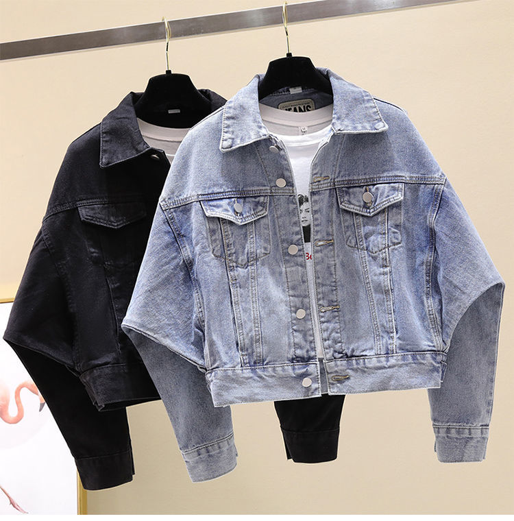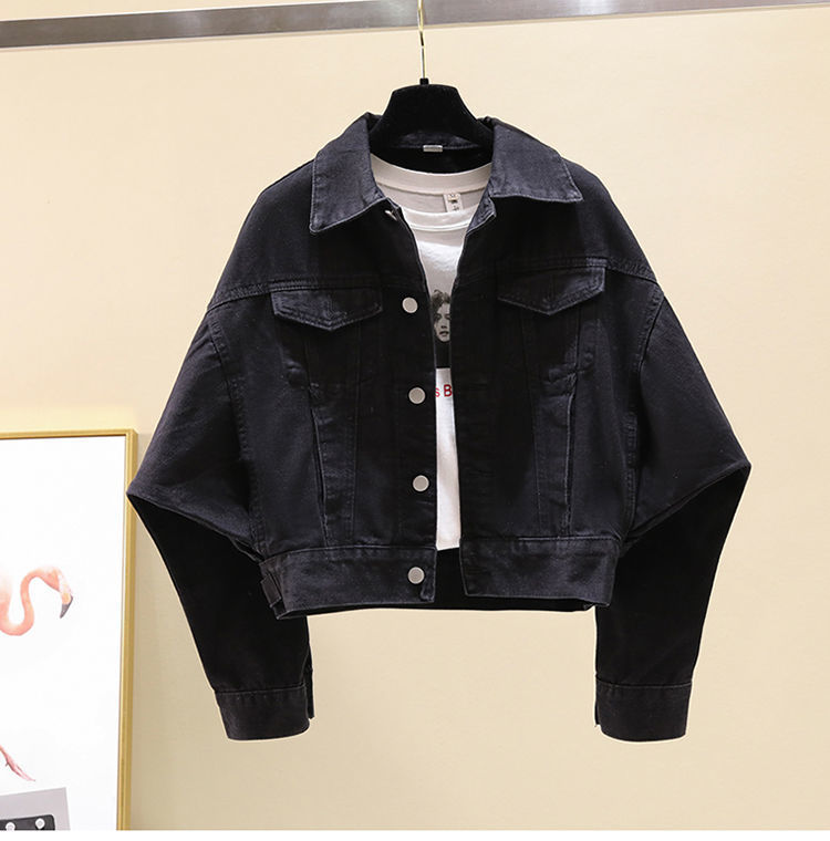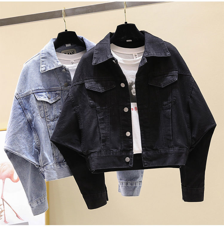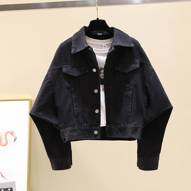 여성을위한 블랙 배트 슬리브 짧은 데님 재킷 2020 봄, 가을 새로운 한국 스타일 느슨한 bf 홍콩 스타일 학생 재킷 유행스토어 가기