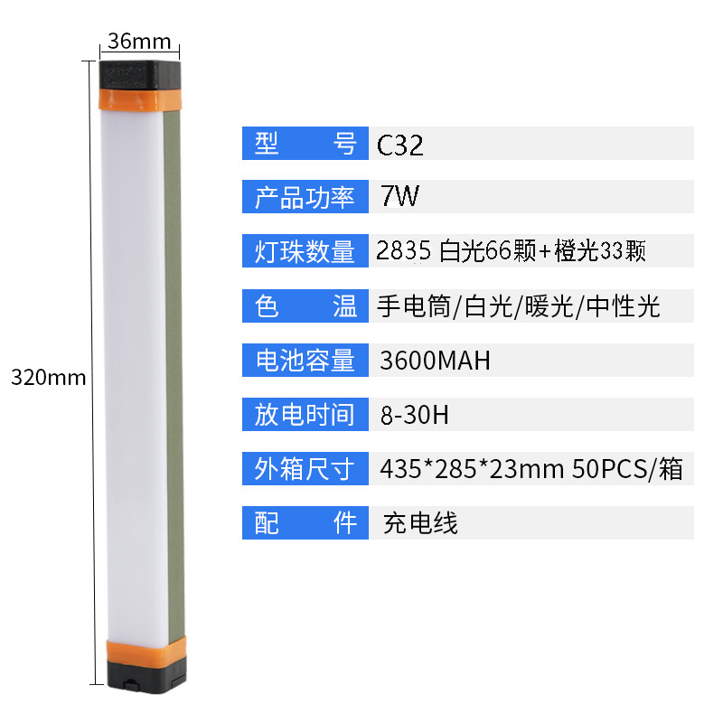 LED 다기능 야외 캠핑 라이트 텐트 라이트 충전식 비상 튜브 손전등 기능이있는 야간 시장 조명스토어 가기