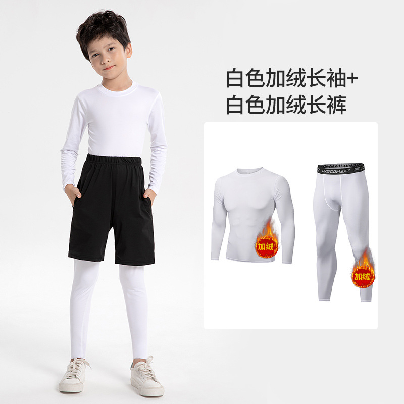 아동용 타이츠 플러스 벨벳 세트 남녀 공용 스포츠 베이스 레이어 러닝 농구 트레이닝 타이츠 피트니스 의류 빠른 건조