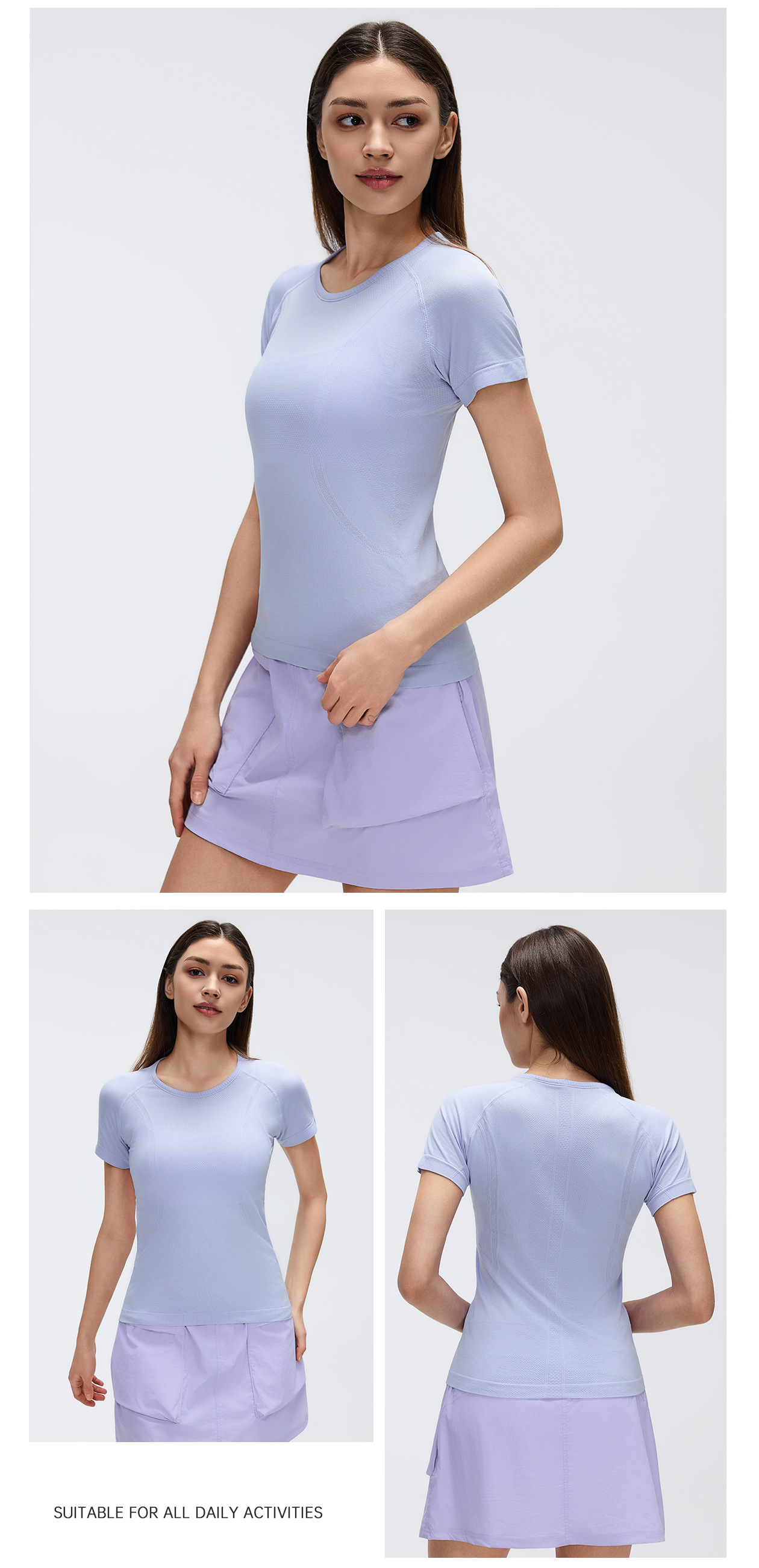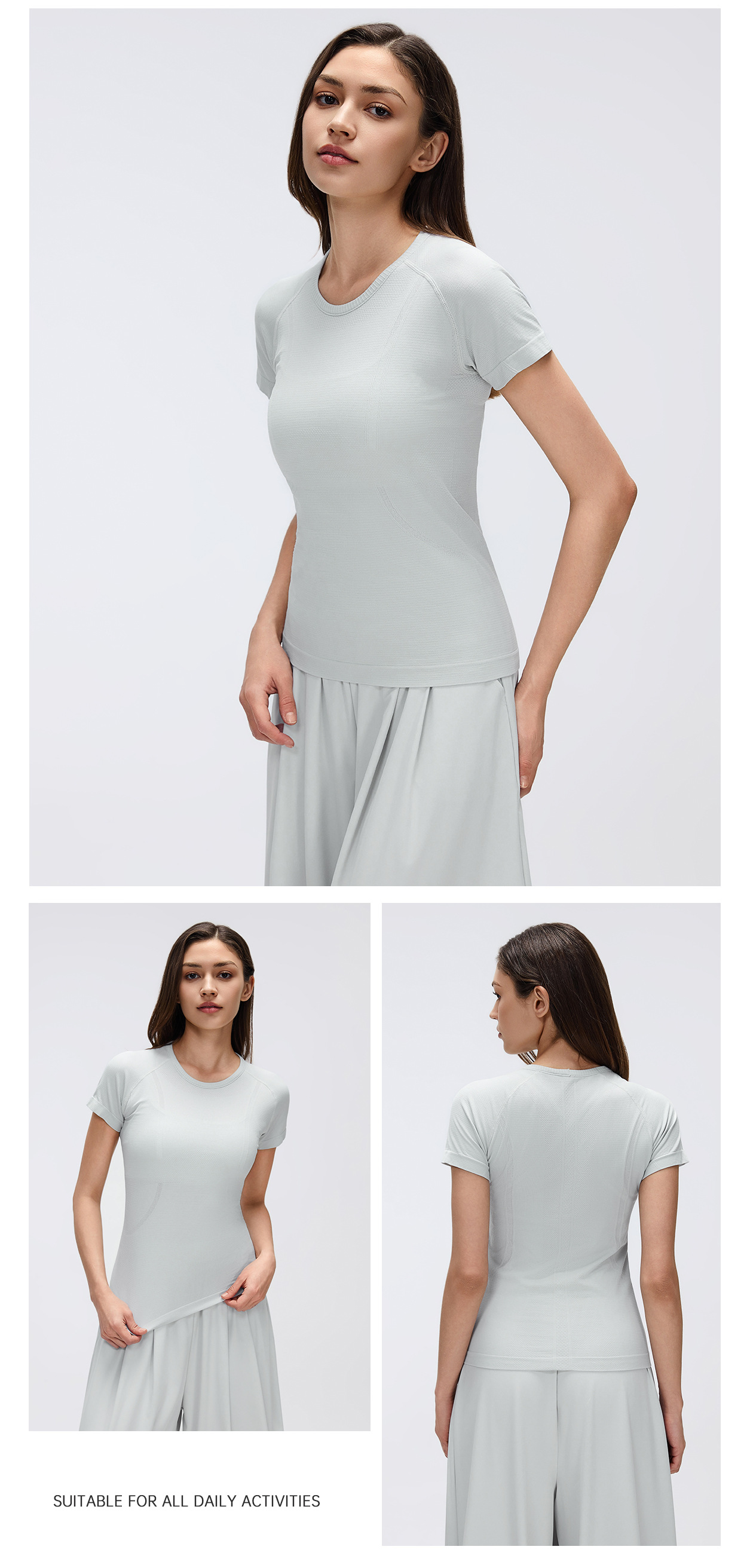 차세대 여성용 반팔 크루 넥 스포츠 티셔츠 러닝 피트니스 탑 슬림 통기성 요가 반팔