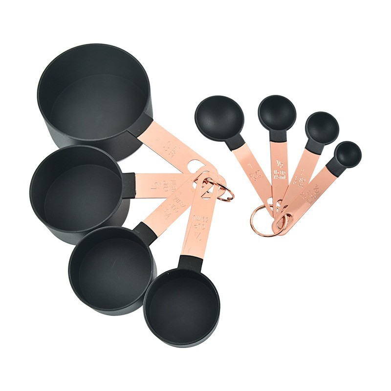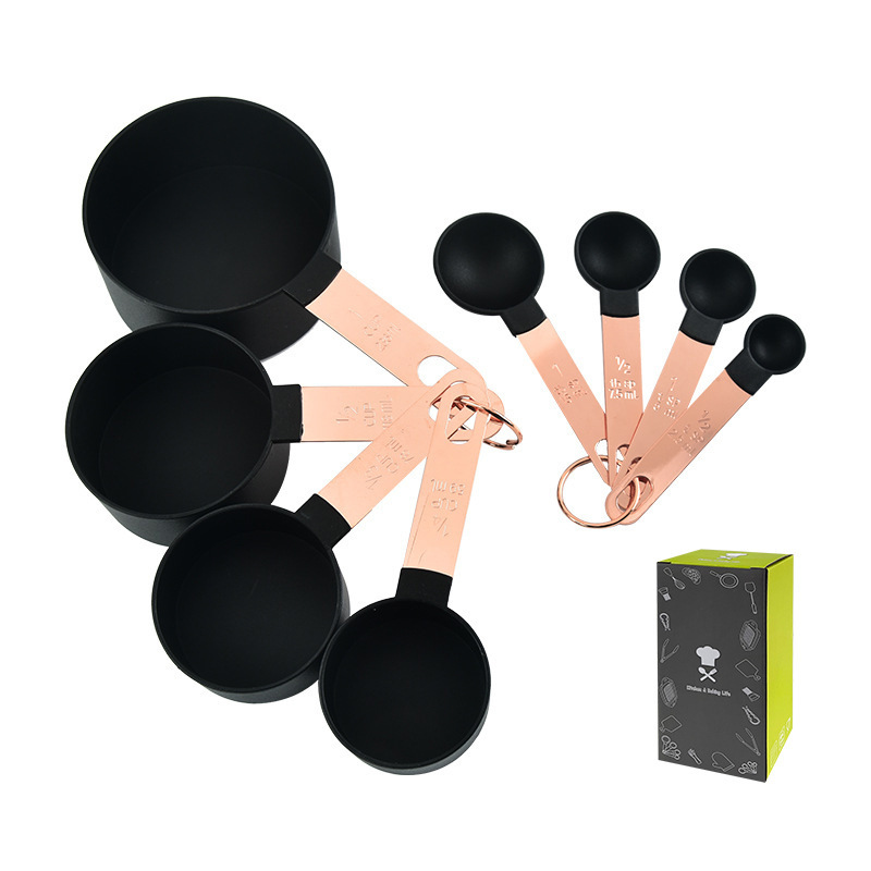 플라스틱 측정 컵 측정 숟가락 세트 구리 도금 로즈 골드 스테인레스 스틸 핸들 스케일 플라스틱 측정 컵 측정 숟가락 세트