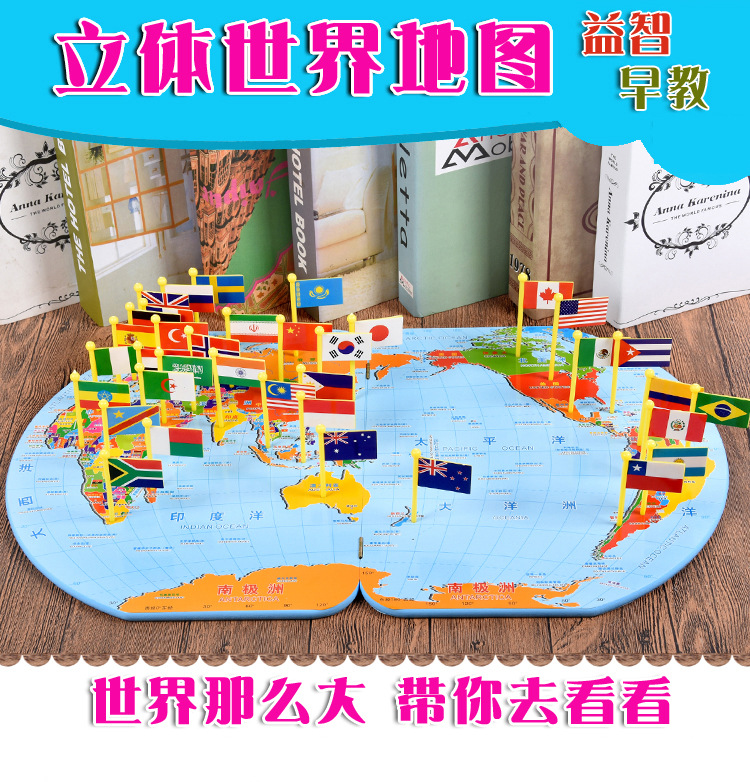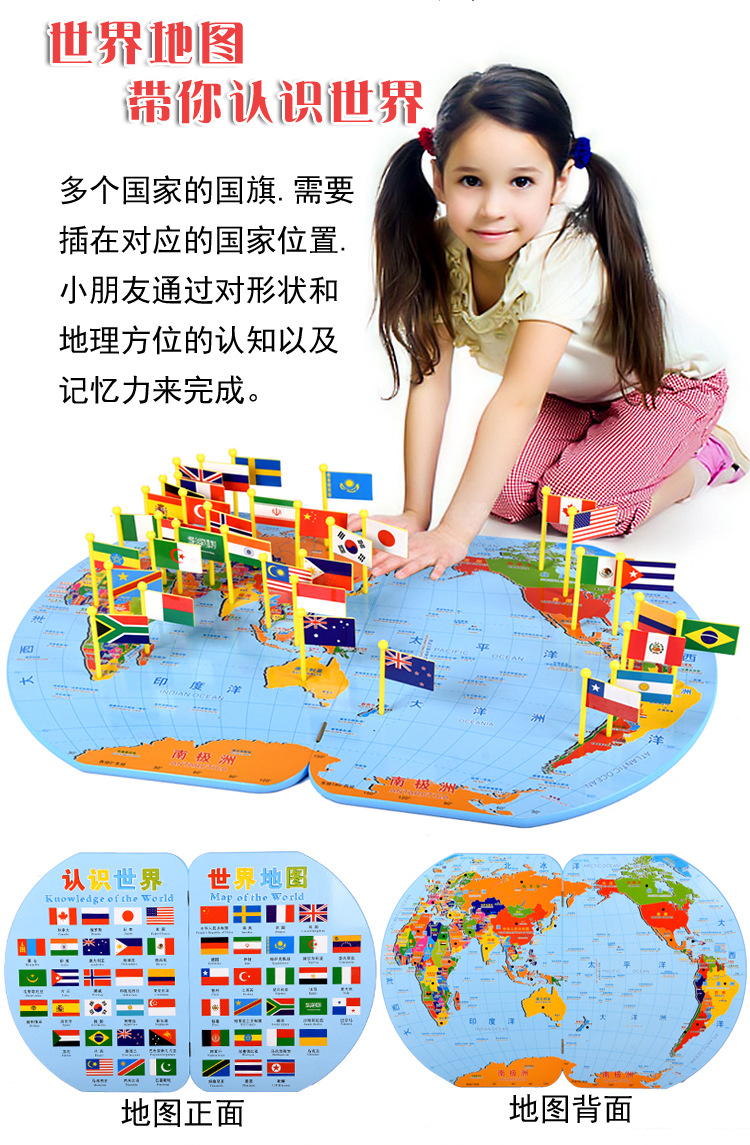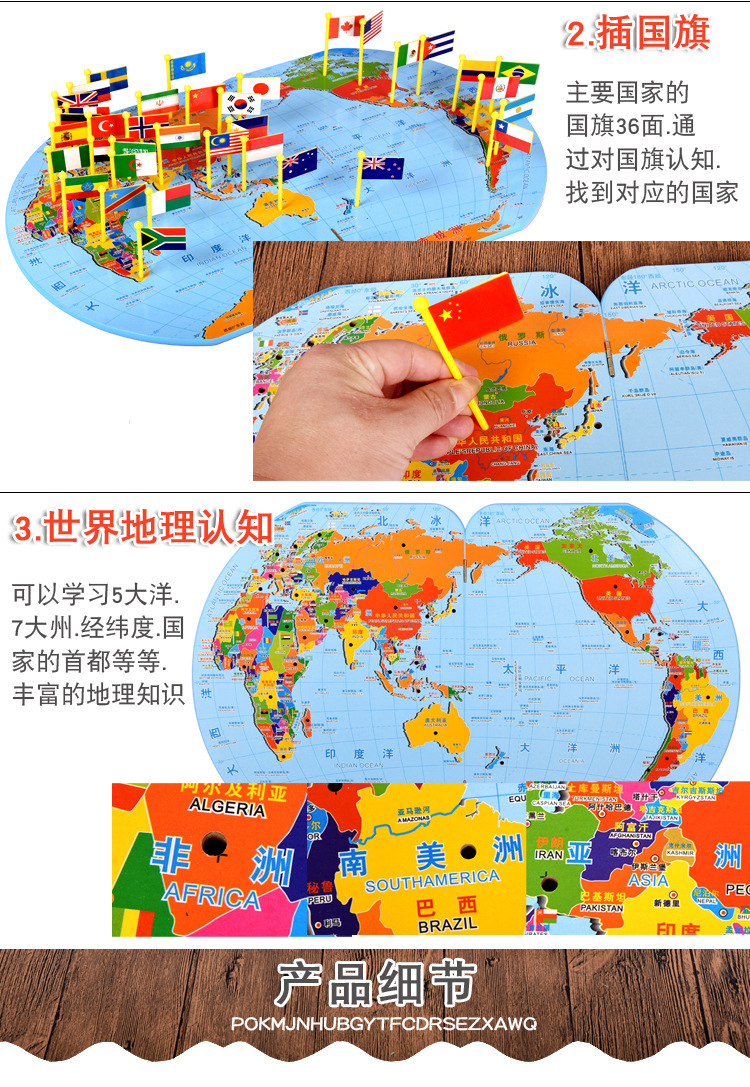 세계지도 깃발 인지 어린이 스테레오 직소 퍼즐 유치원 몬테소리 조기 교육 개발 교육 완구 나무스토어 가기
