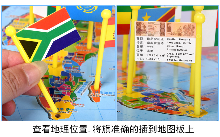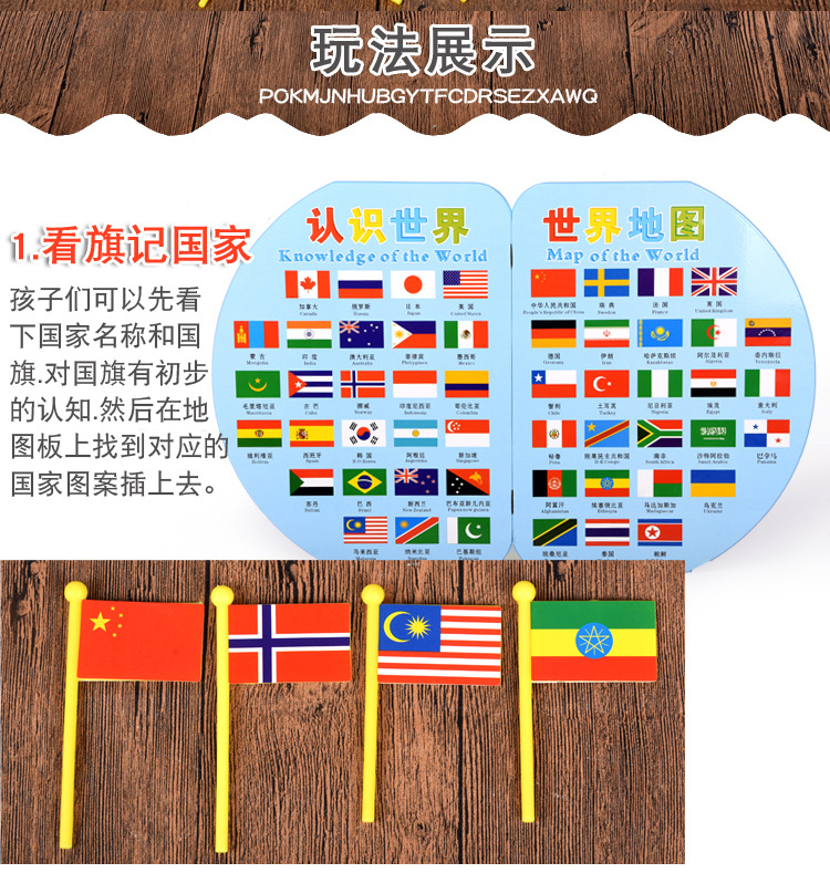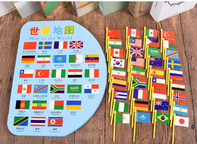 세계지도 깃발 인지 어린이 스테레오 직소 퍼즐 유치원 몬테소리 조기 교육 개발 교육 완구 나무