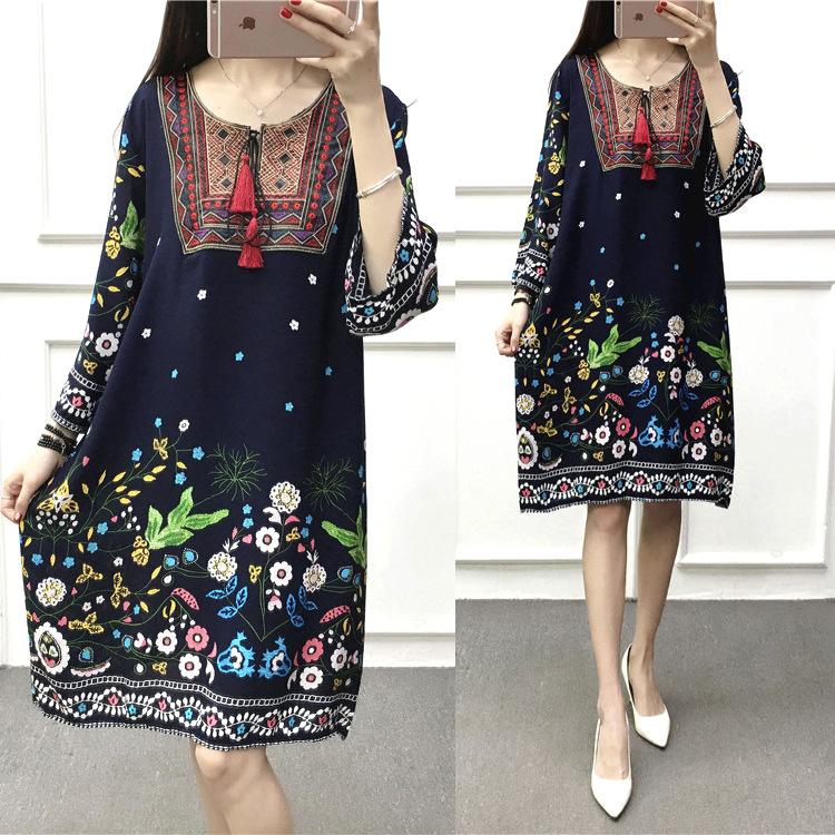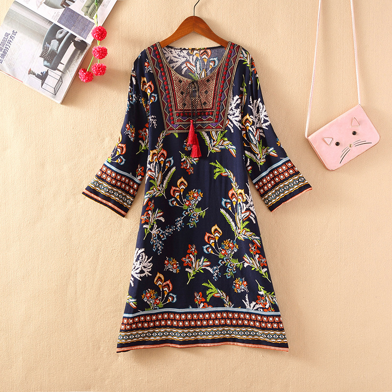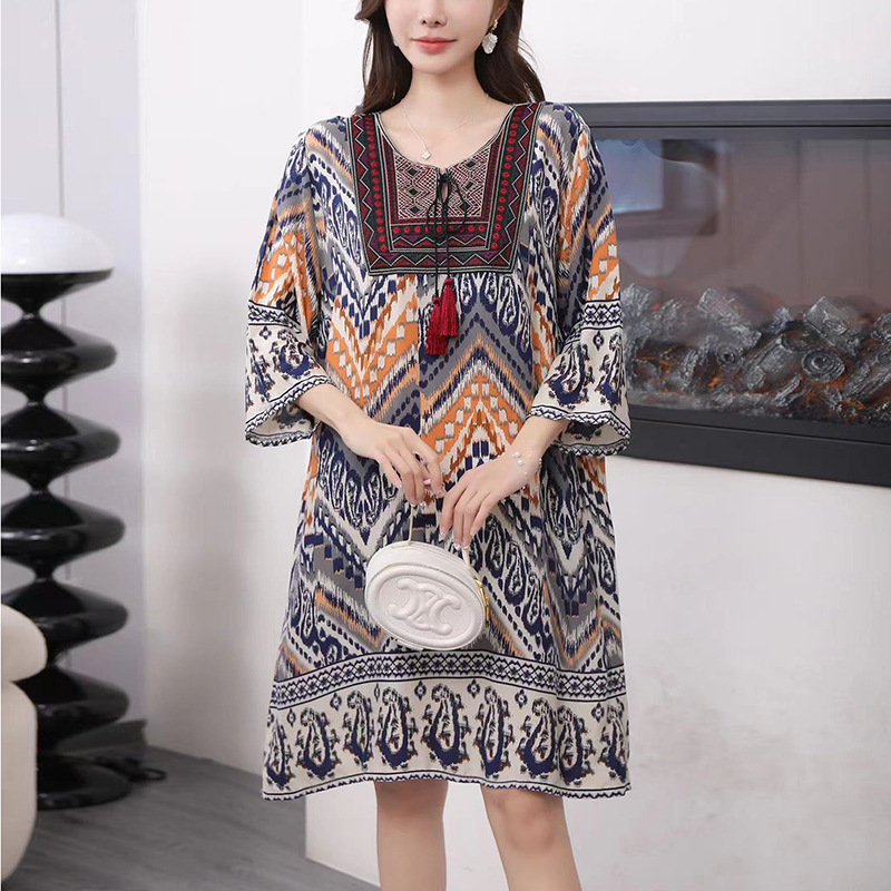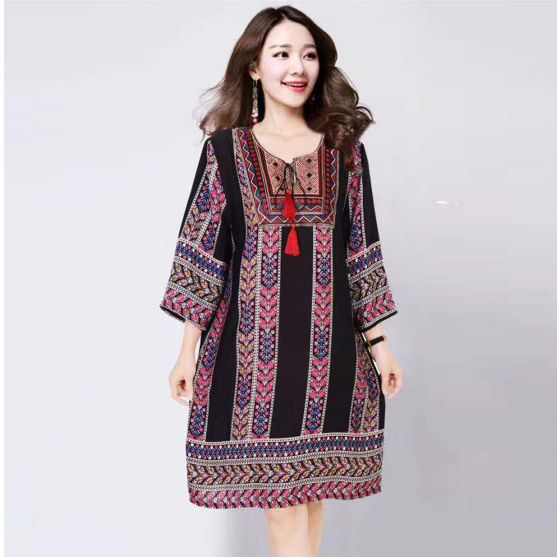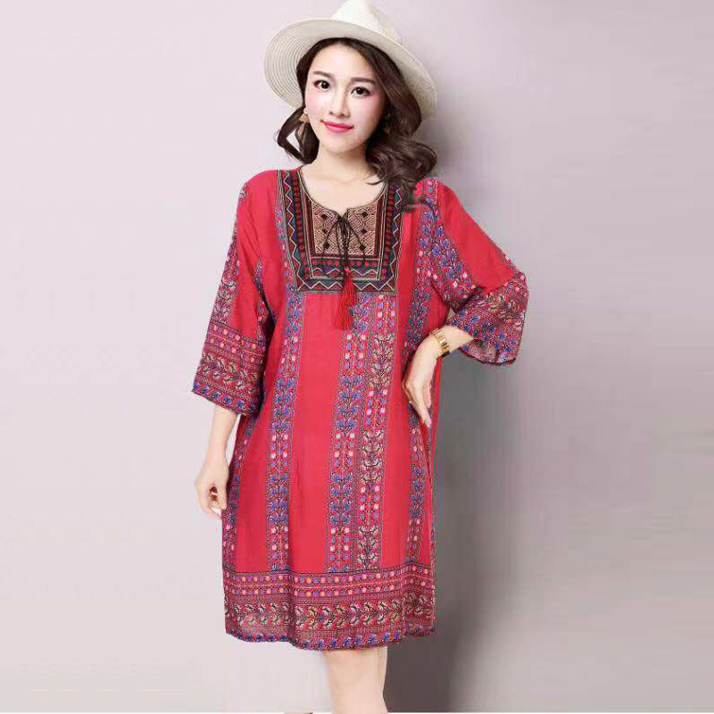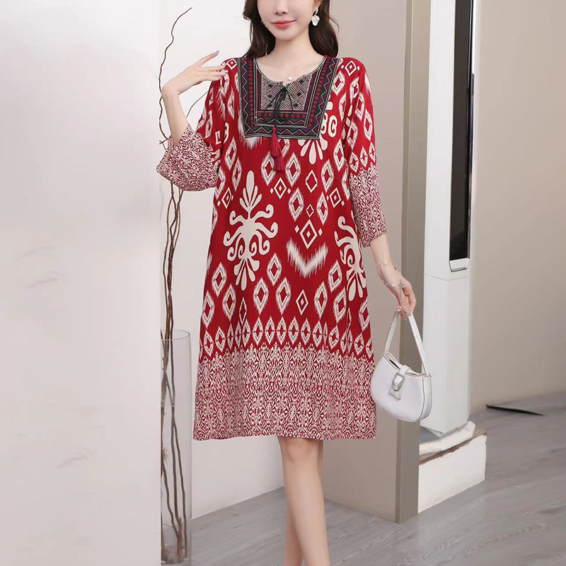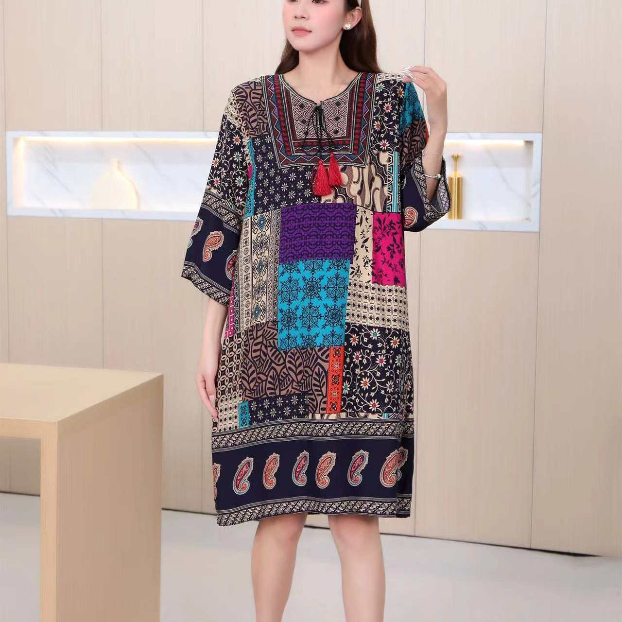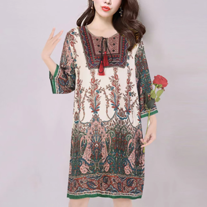 크로스보더 면 실크 원피스, 문학적 복고풍 민족 스타일 여성복, 태국 스타일 A라인 원피스, 면 원피스, 여름용스토어 가기