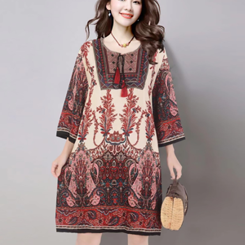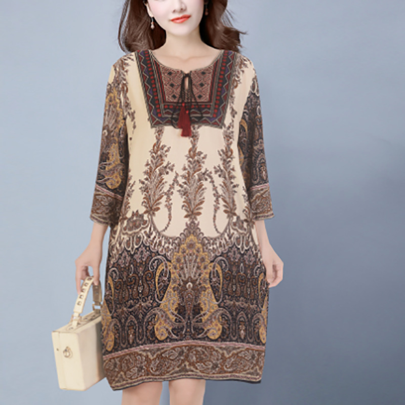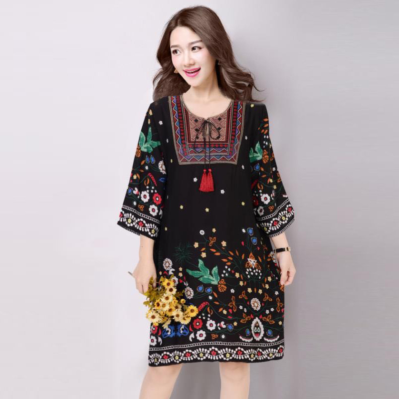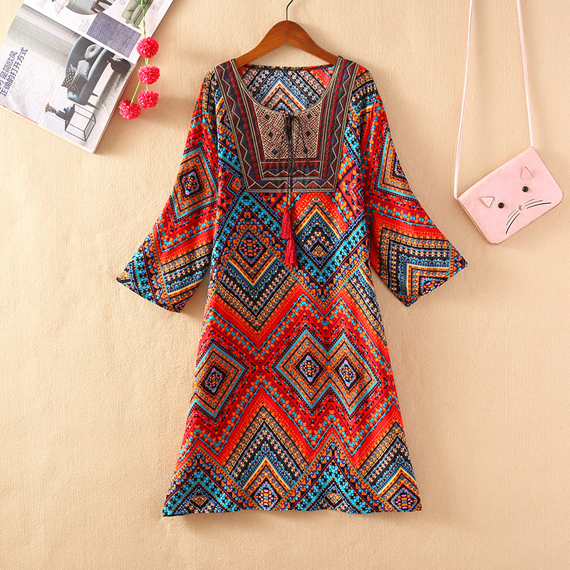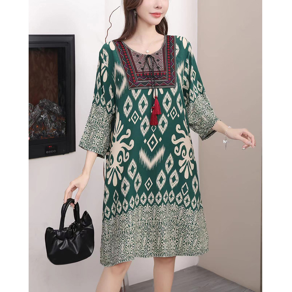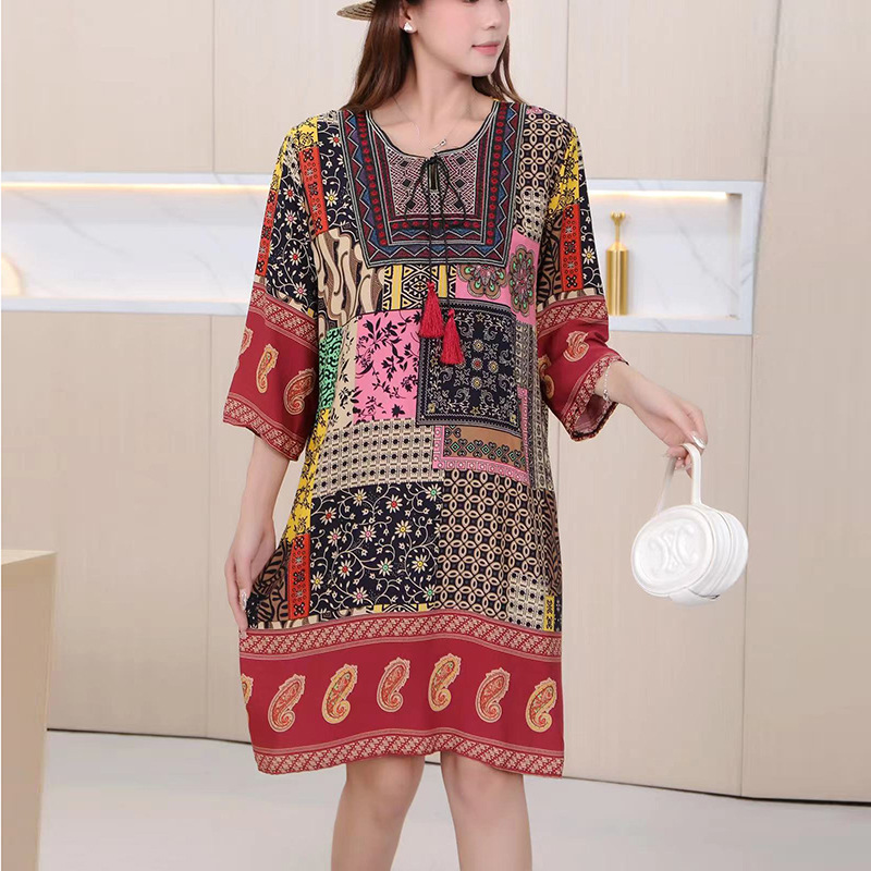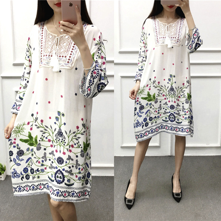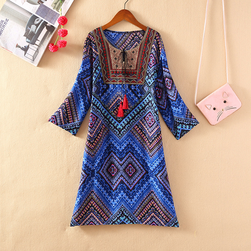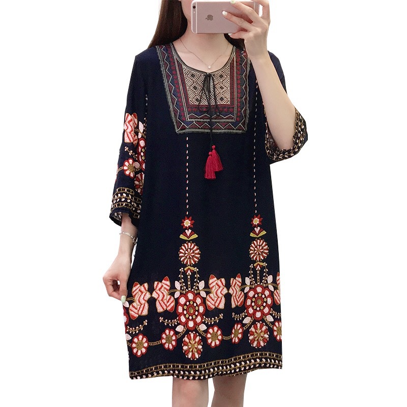 크로스보더 면 실크 원피스, 문학적 복고풍 민족 스타일 여성복, 태국 스타일 A라인 원피스, 면 원피스, 여름용스토어 가기