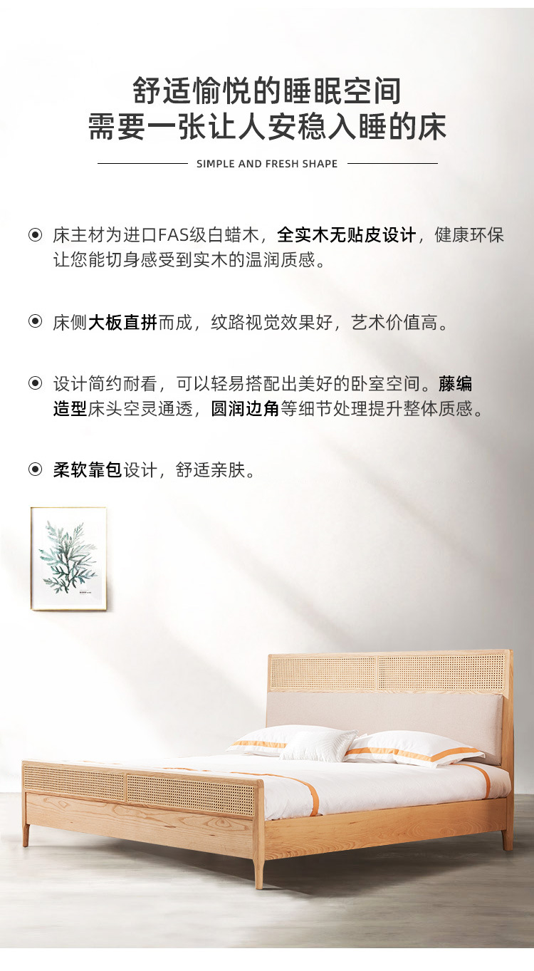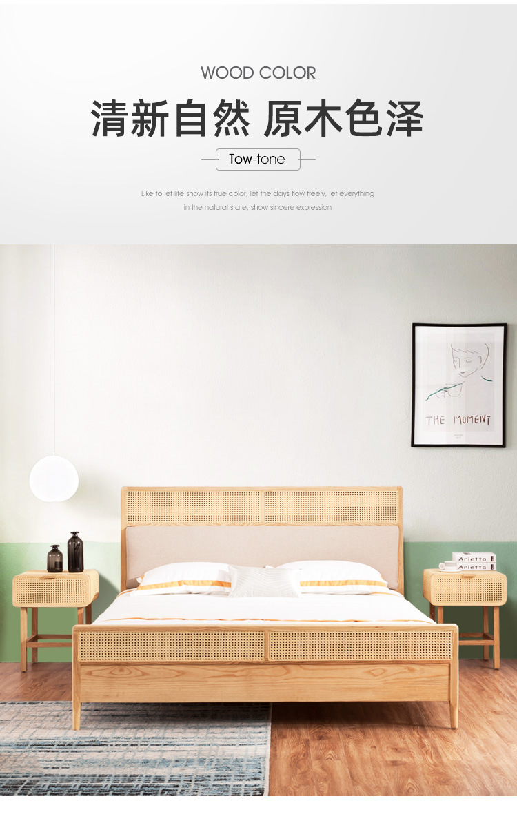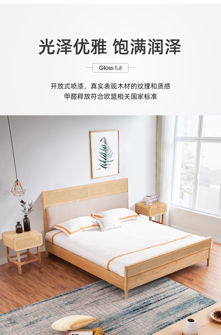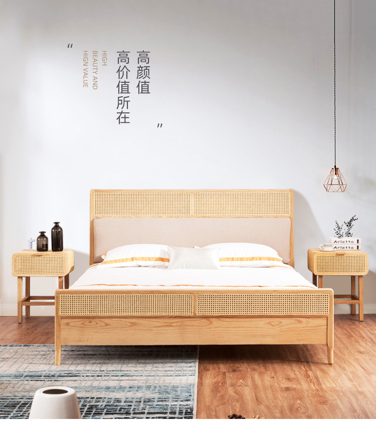 미팅 베드 노르딕 심플 인 홈스테이 호텔 리얼 베드 우드 1.8 m 더블 모던 애쉬 등나무 가구스토어 가기