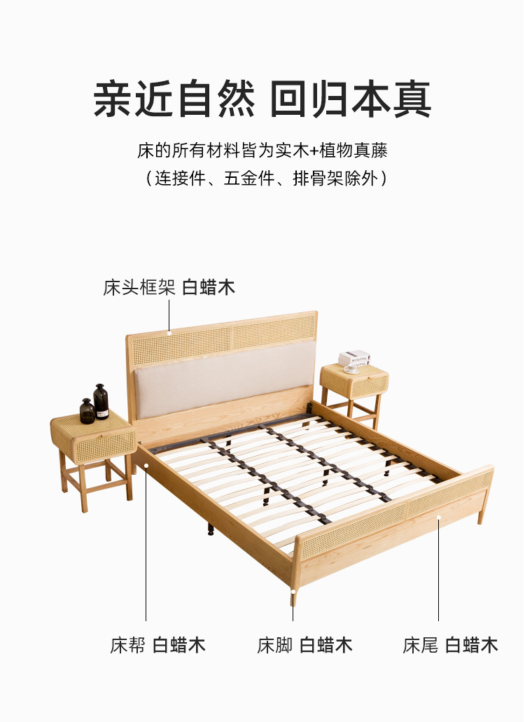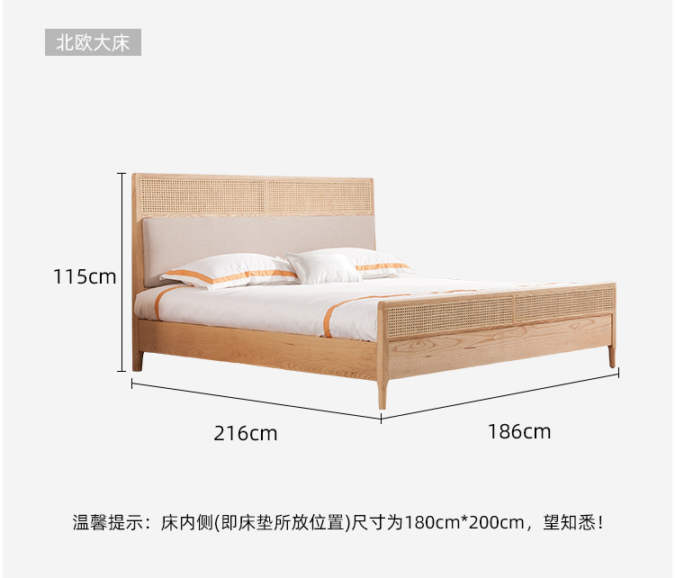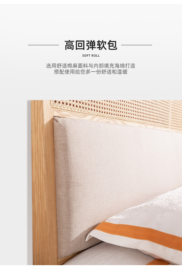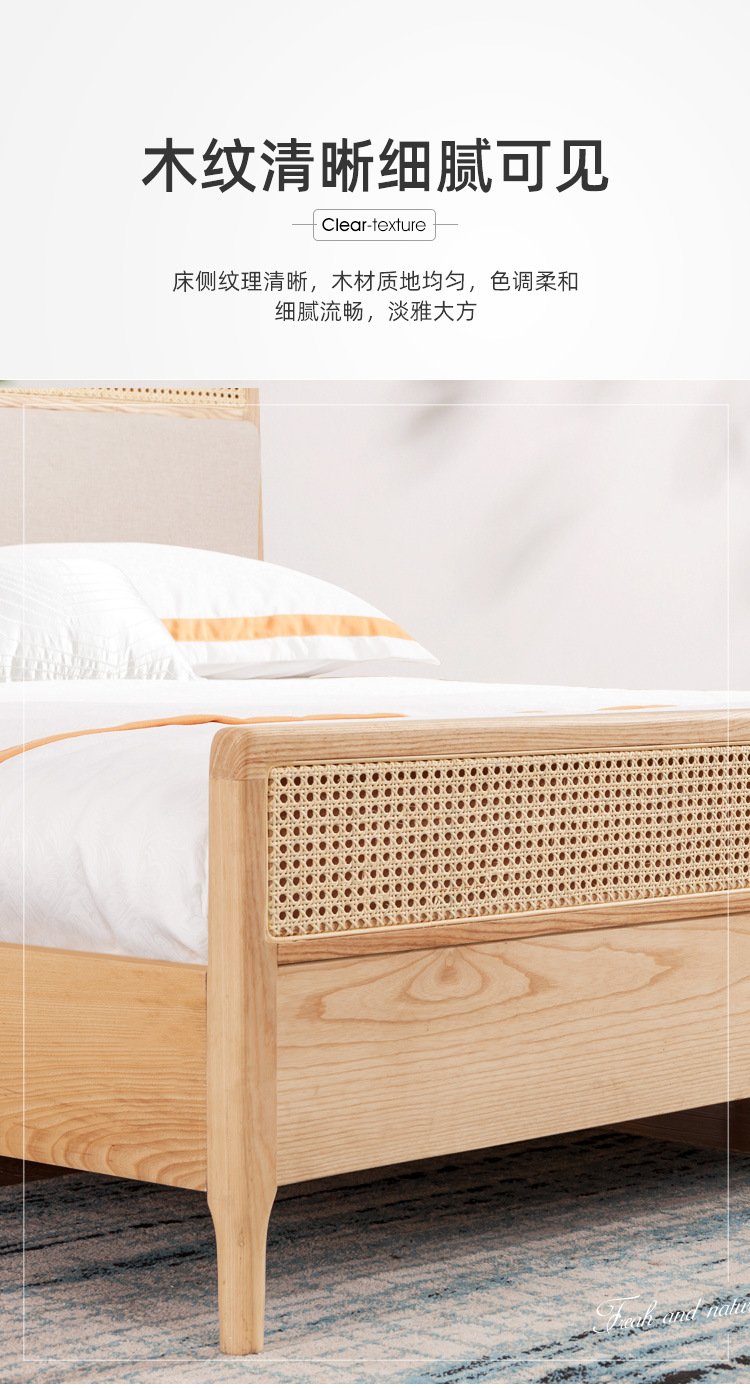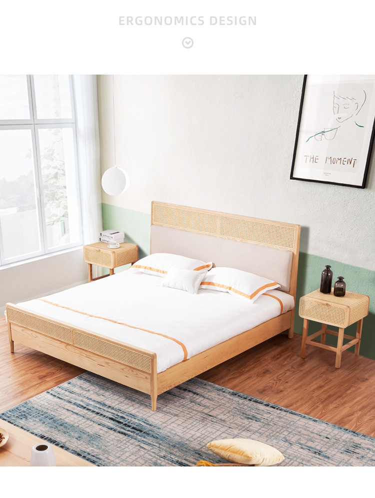 미팅 베드 노르딕 심플 인 홈스테이 호텔 리얼 베드 우드 1.8 m 더블 모던 애쉬 등나무 가구