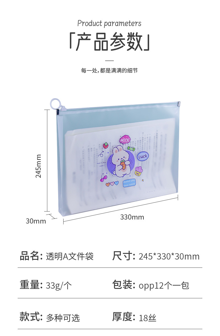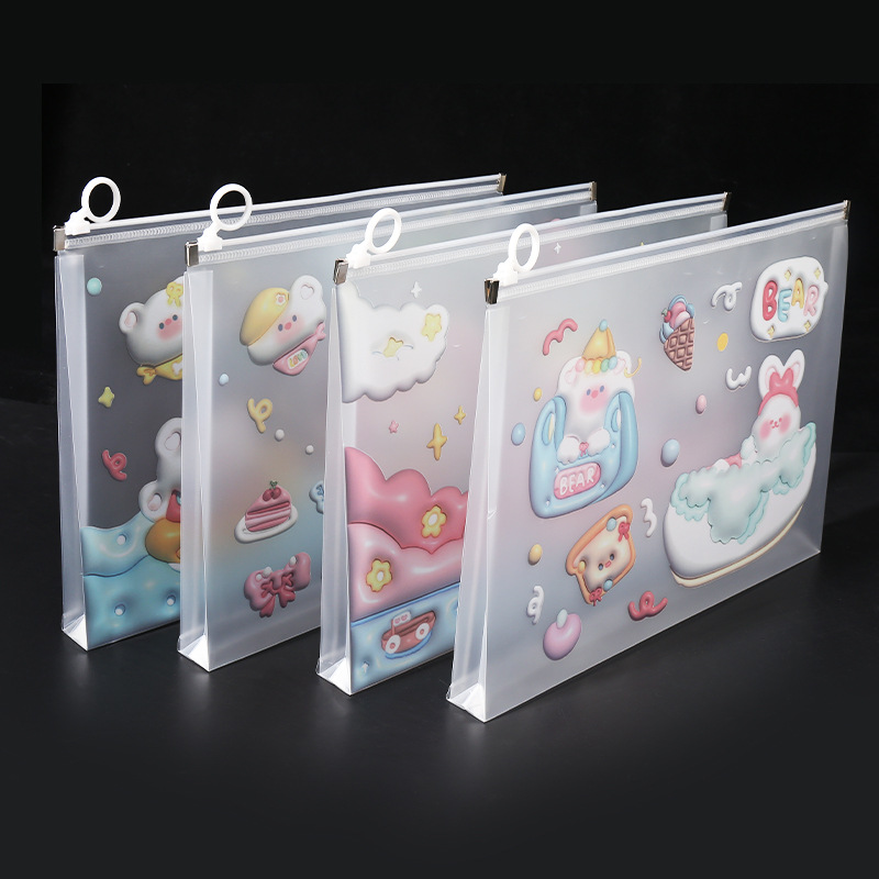 입체 지퍼백 학생 만화 패턴 시험지 문서 보관 가방 방수 두꺼운 A4 플라스틱 산모검진서 가방