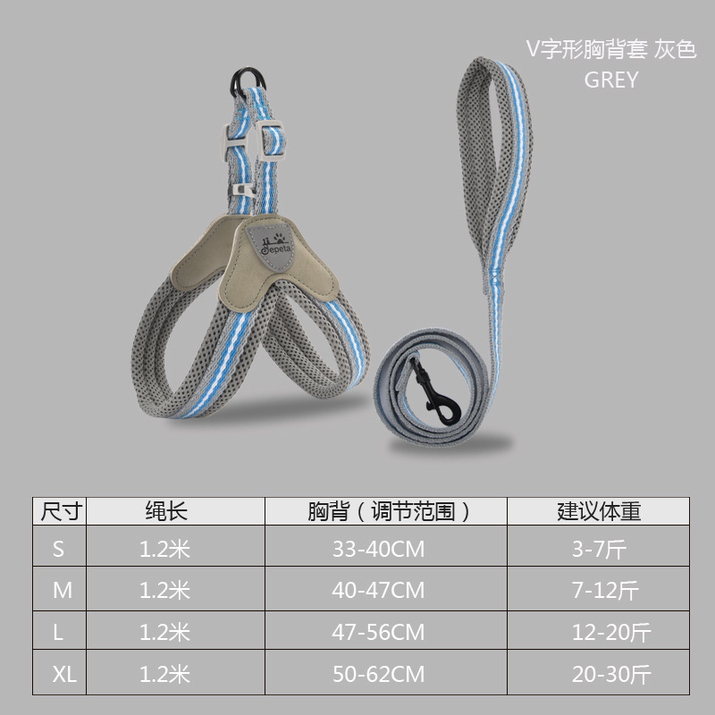 국경 간 새로운 애완 동물 가슴 끈 조끼 개 견인 로프 고양이 통기성 안티 브레이크 애완 동물 용품 도매