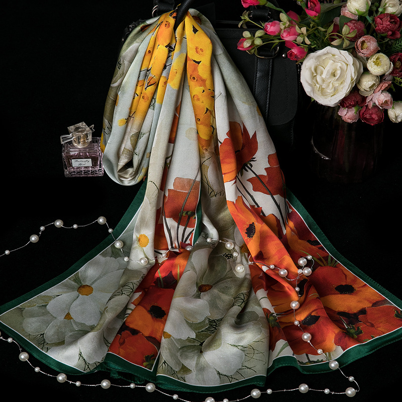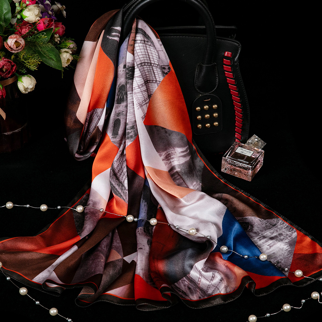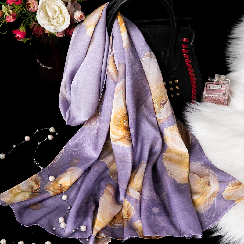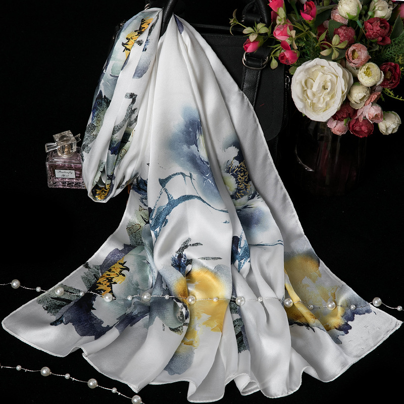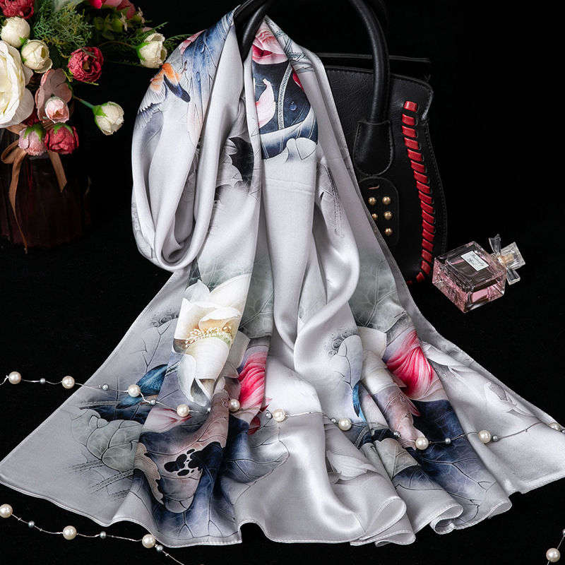 대외 무역 100% 실크 스카프, 여성용 봄 가을 엄마들을 위한 세련되고 다재다능한 패션 실크 스카프, 여름용 얇은 스타일