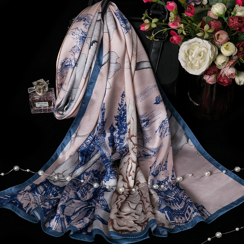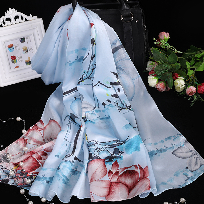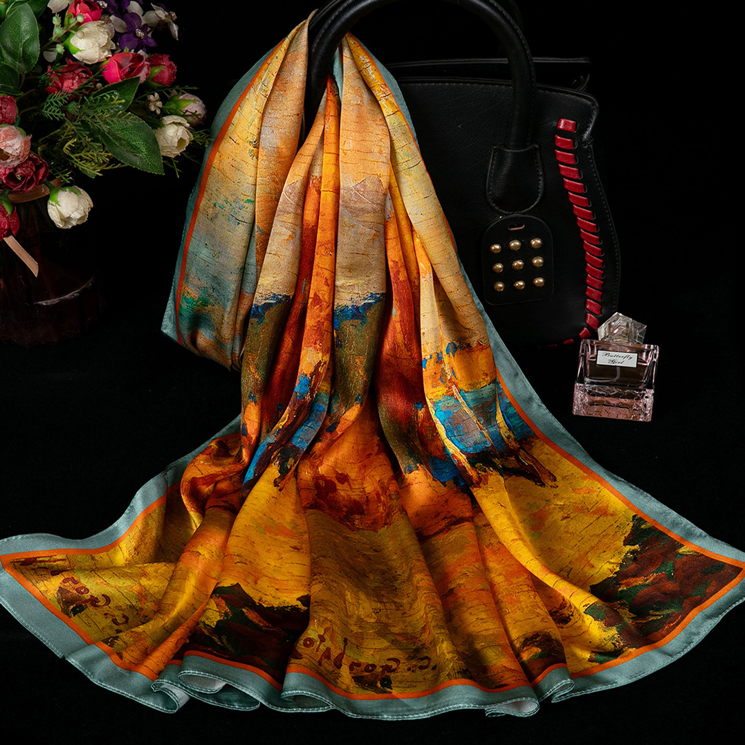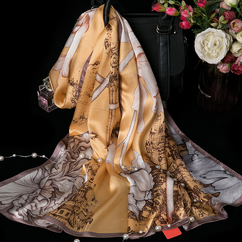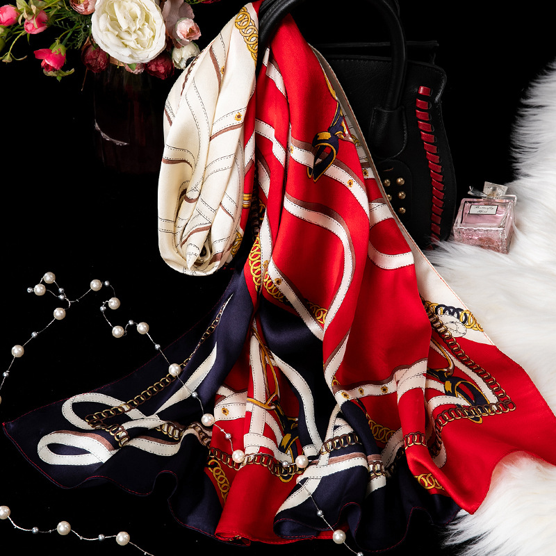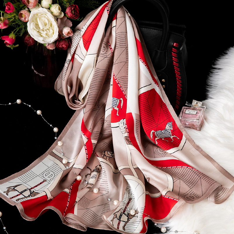 대외 무역 100% 실크 스카프, 여성용 봄 가을 엄마들을 위한 세련되고 다재다능한 패션 실크 스카프, 여름용 얇은 스타일