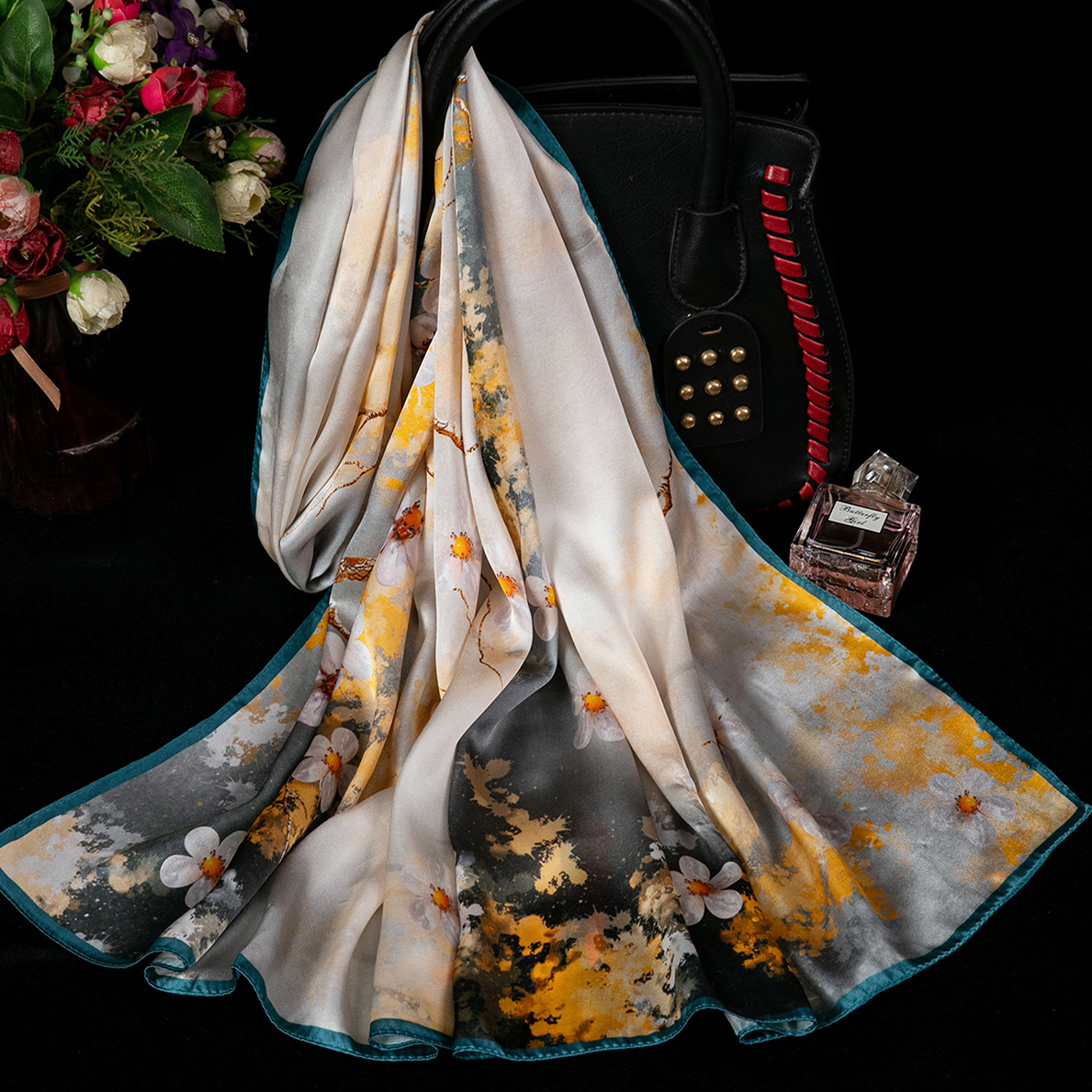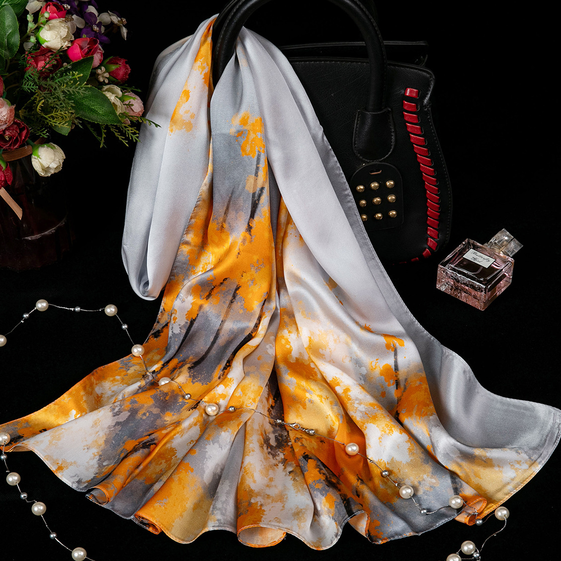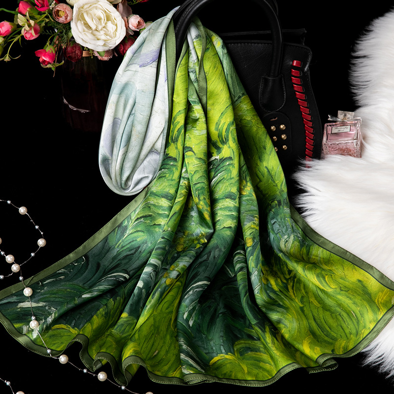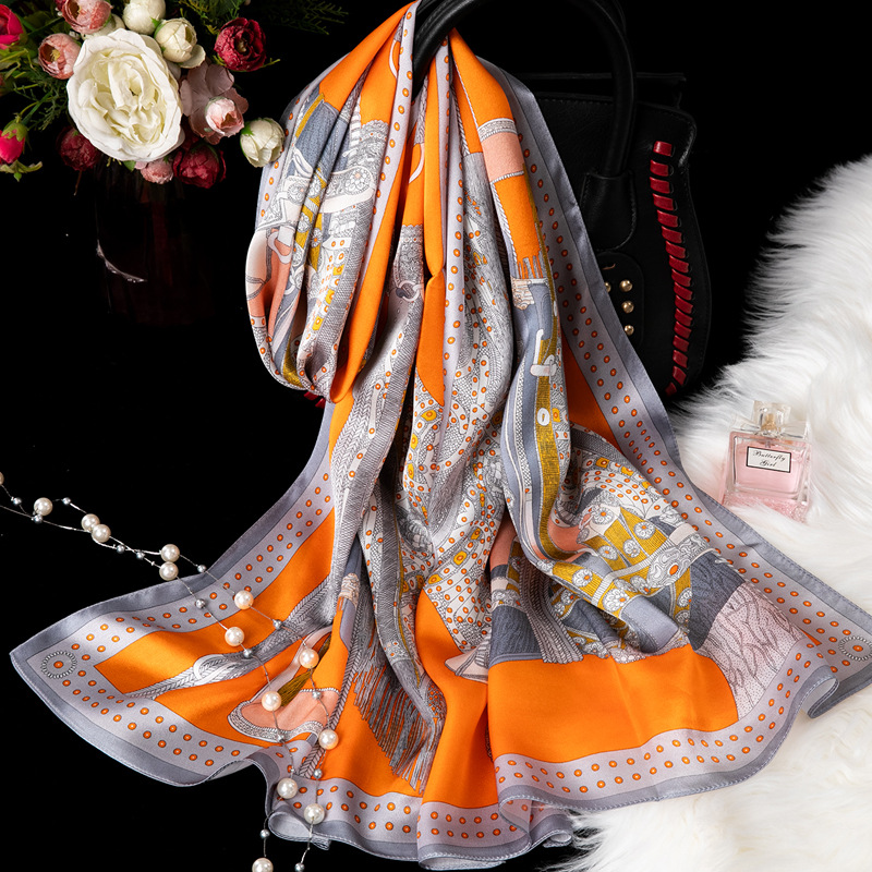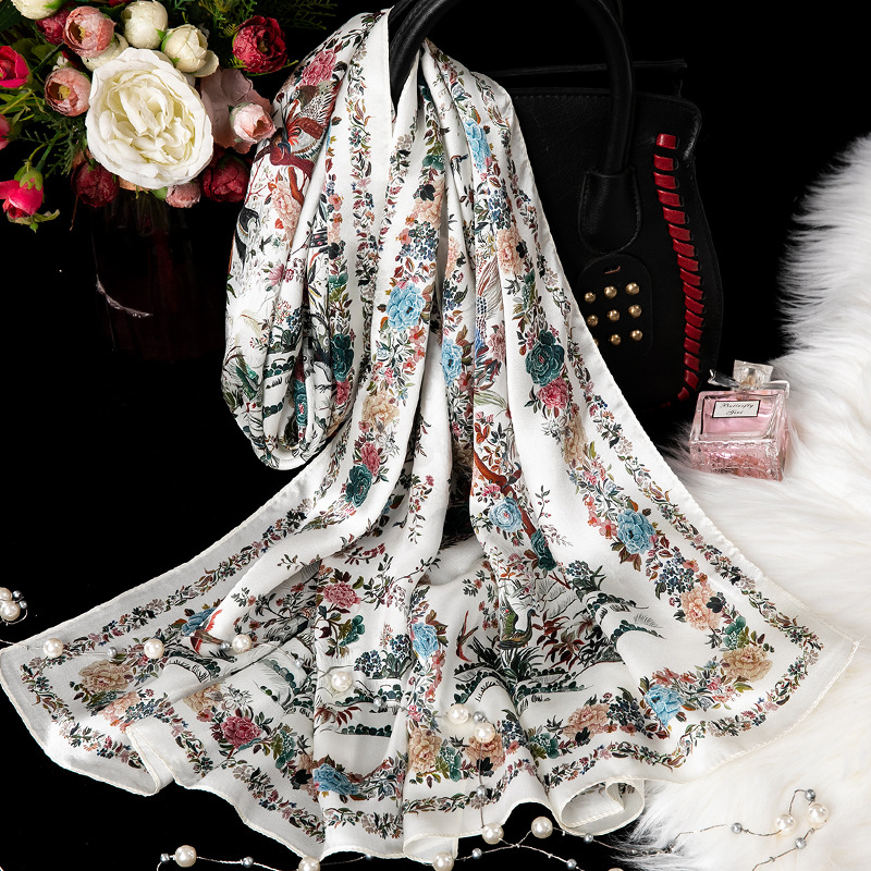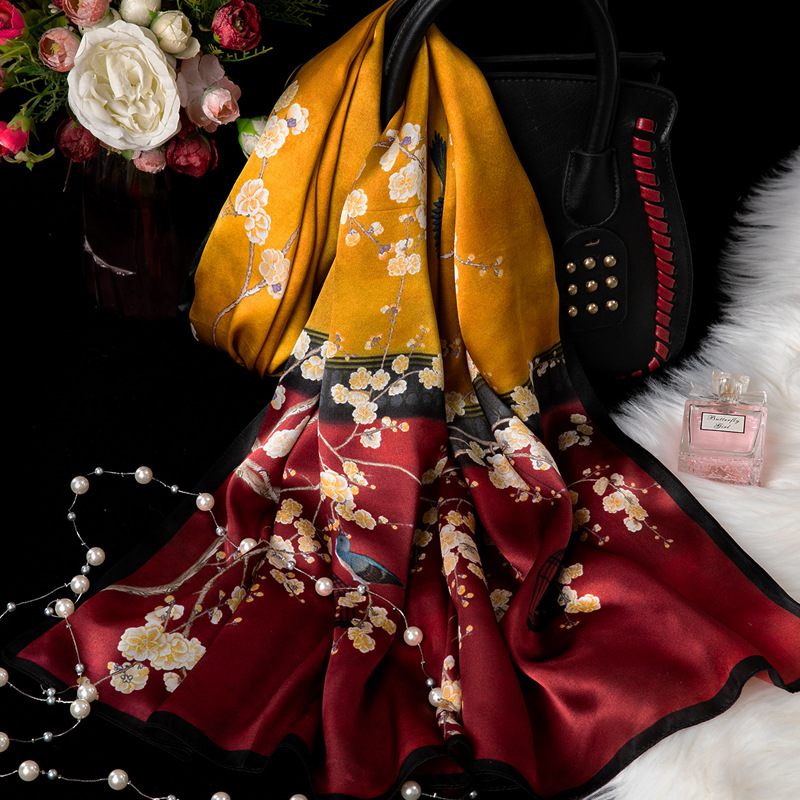 대외 무역 100% 실크 스카프, 여성용 봄 가을 엄마들을 위한 세련되고 다재다능한 패션 실크 스카프, 여름용 얇은 스타일스토어 가기