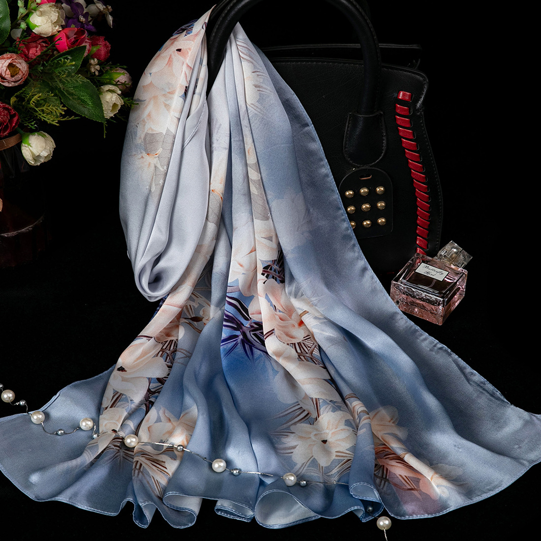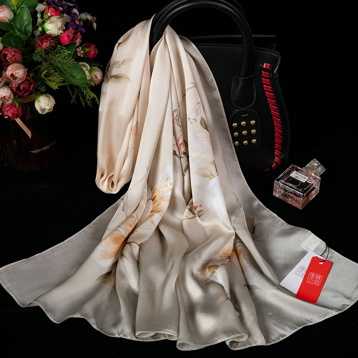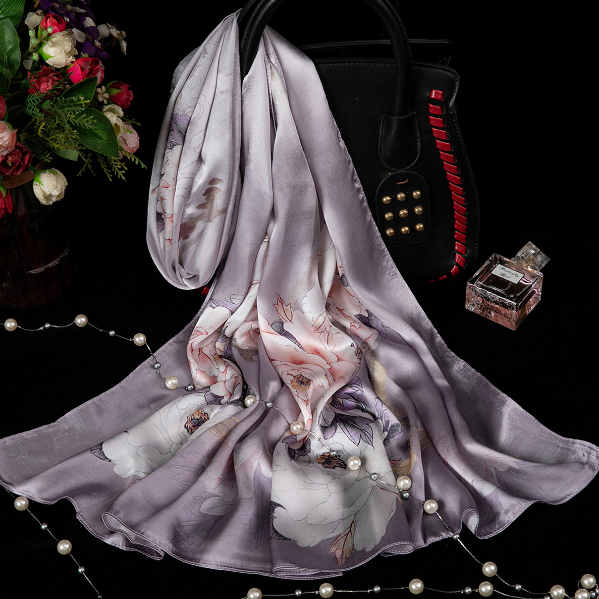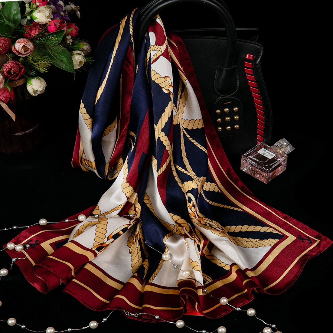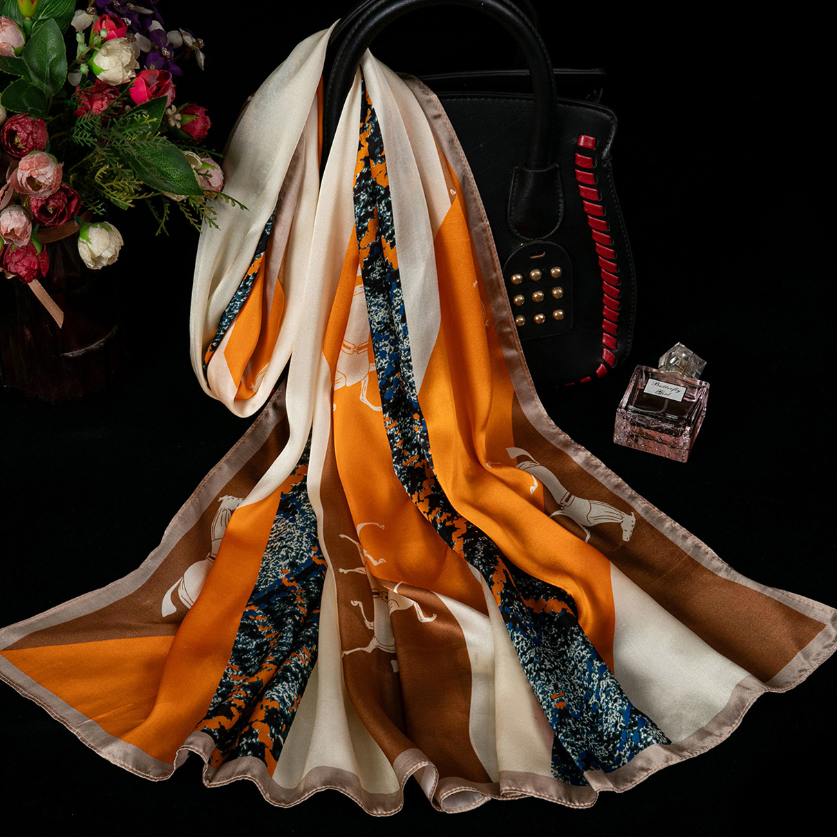 대외 무역 100% 실크 스카프, 여성용 봄 가을 엄마들을 위한 세련되고 다재다능한 패션 실크 스카프, 여름용 얇은 스타일스토어 가기