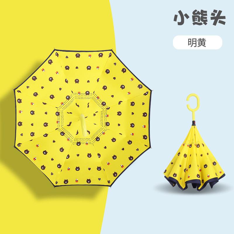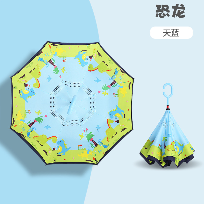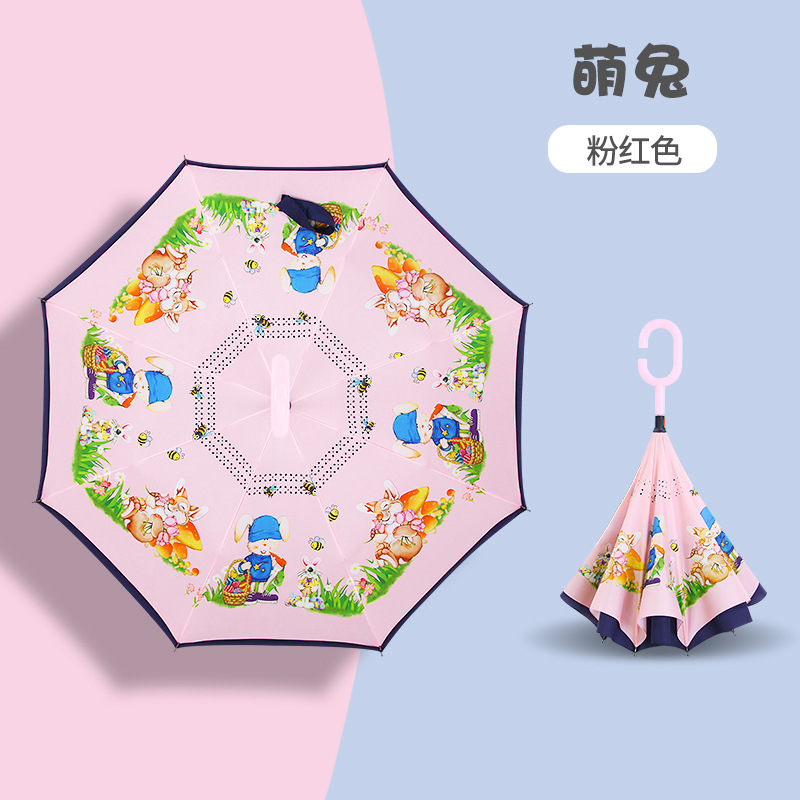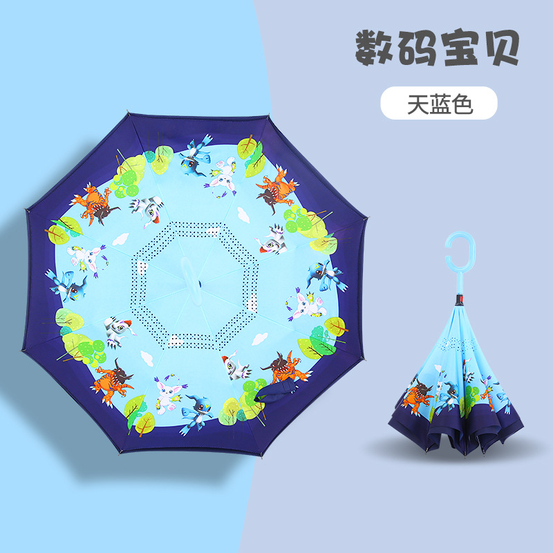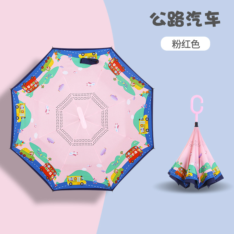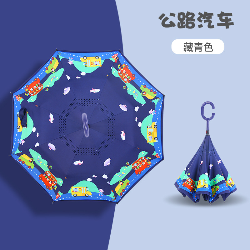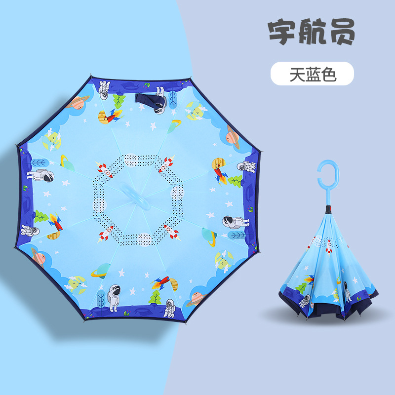 초등학생용 만화 캐릭터 우산, 이중 C형 역방향 어린이 우산, 로고 인쇄, 자외선 차단