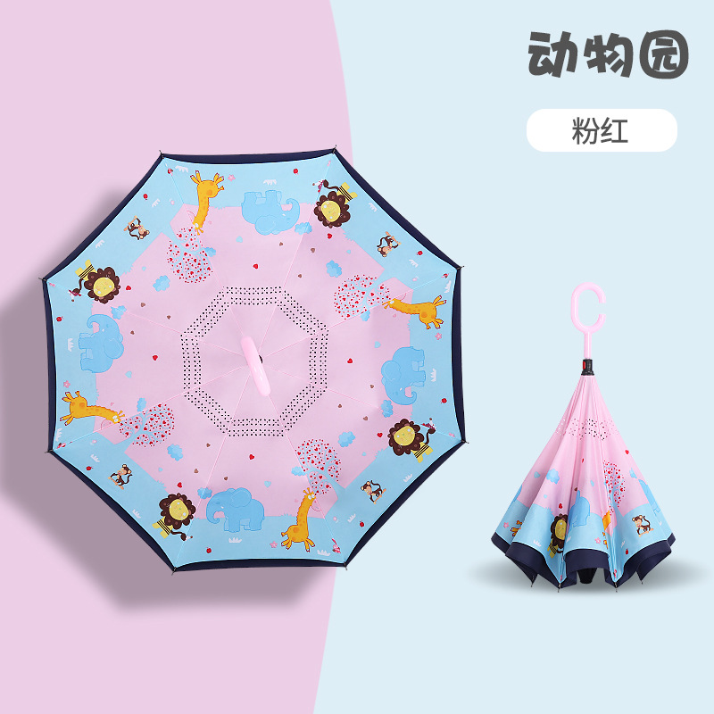 초등학생용 만화 캐릭터 우산, 이중 C형 역방향 어린이 우산, 로고 인쇄, 자외선 차단스토어 가기