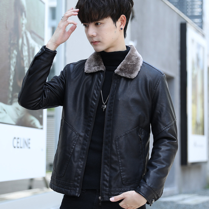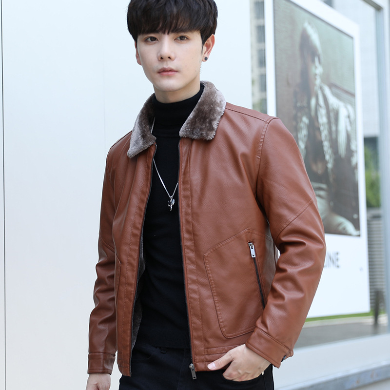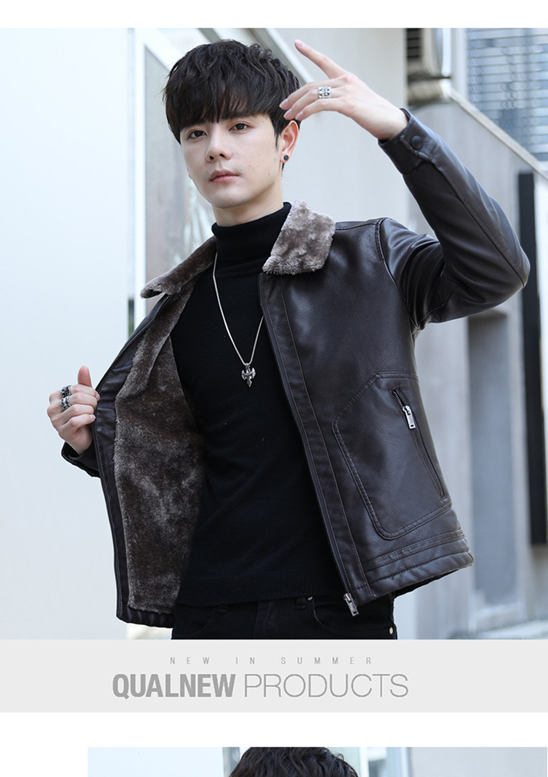 남성용 가죽 자켓, 벨벳 및 두꺼운 겨울 양털 자켓, 라펠 PU 모피 일체형 봄, 가을 자켓, 캐주얼하고 따뜻함스토어 가기