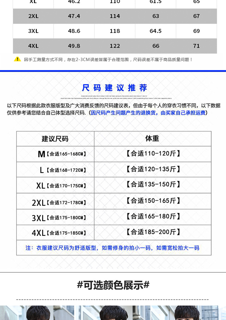 • 4XL 사이즈는 체중 82.5kg-92.5kg에 적합합니다.