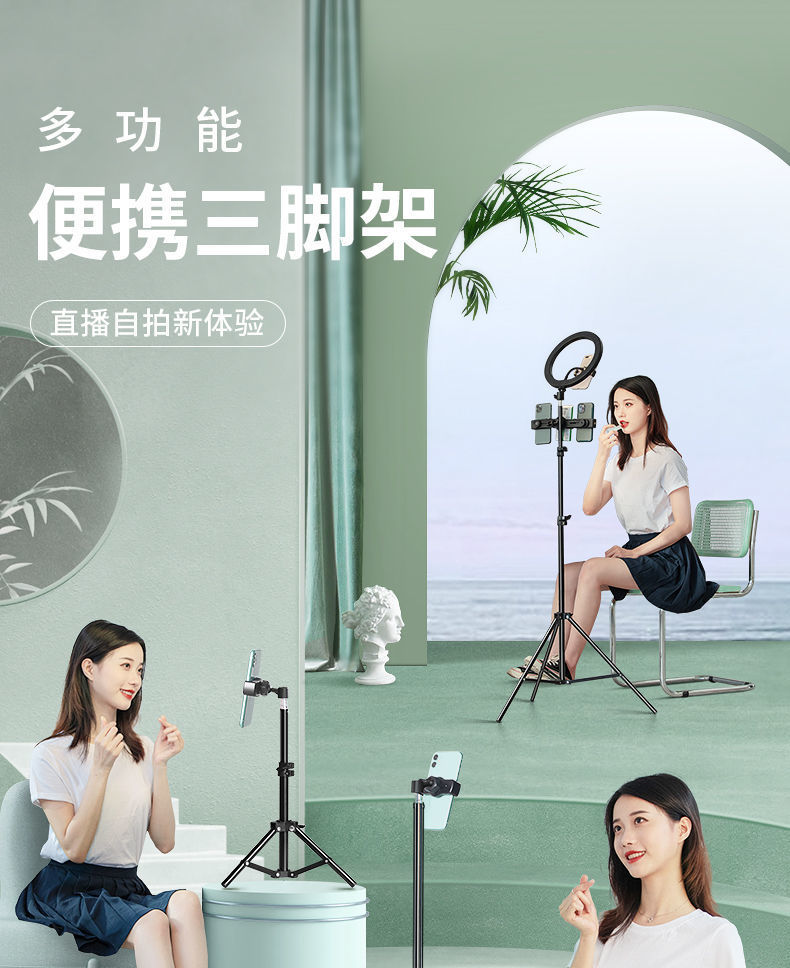 휴대폰 라이브 방송 스탠드, 다기능 블루투스 카메라 및 비디오 기기, 앵커 셀카봉, 데스크탑 및 바닥 삼각대 클립스토어 가기