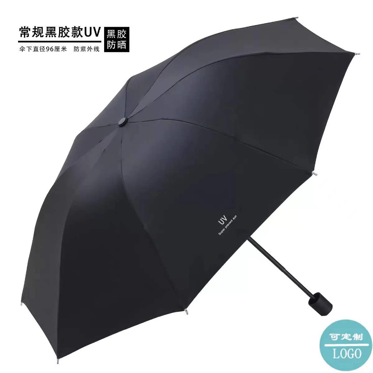 • 수동 접이식 검은 고무 우산 네이비