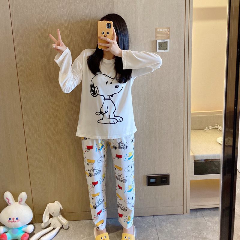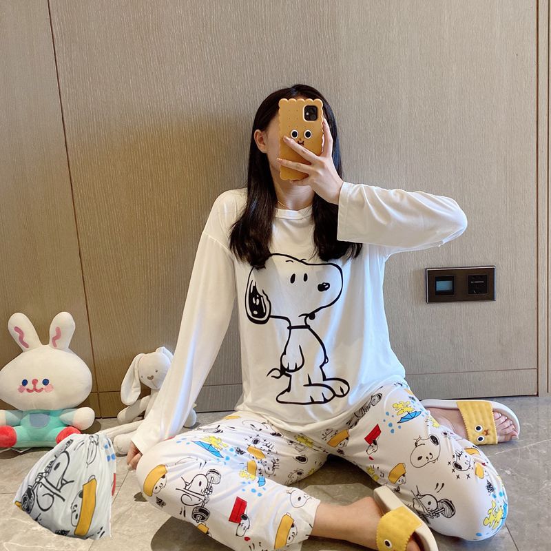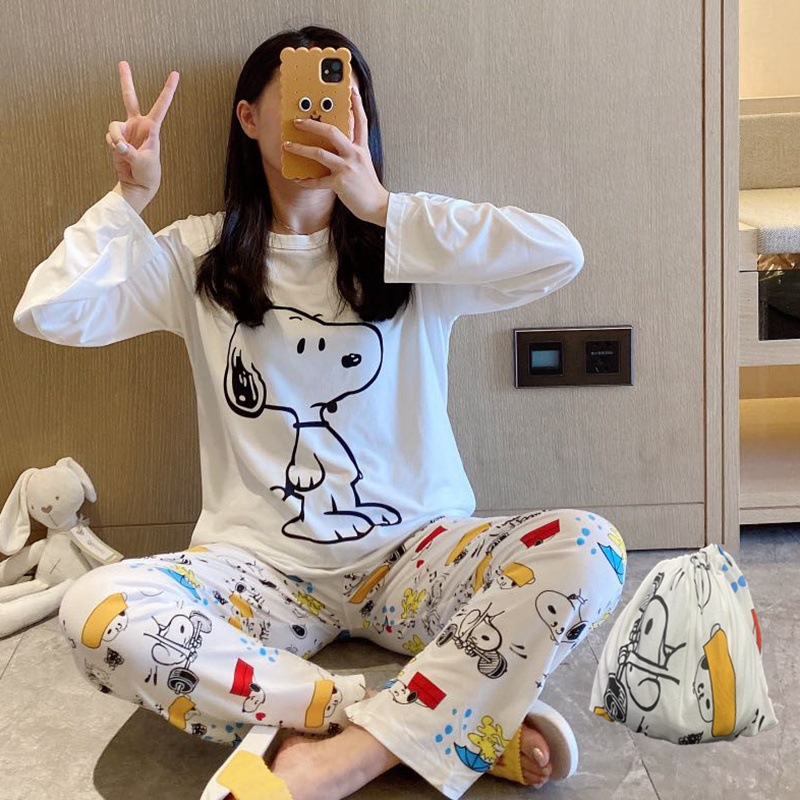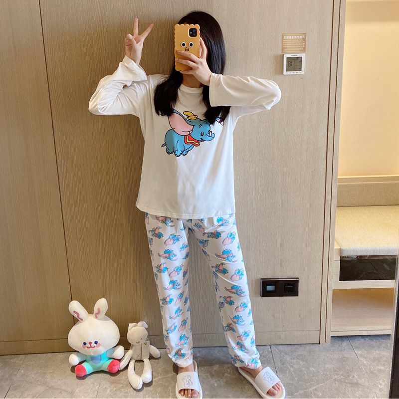 새로운 봄과 가을 잠옷 여자의 캐주얼 만화 귀여운 느슨한 긴 소매 가정 옷 세트 보관 가방스토어 가기