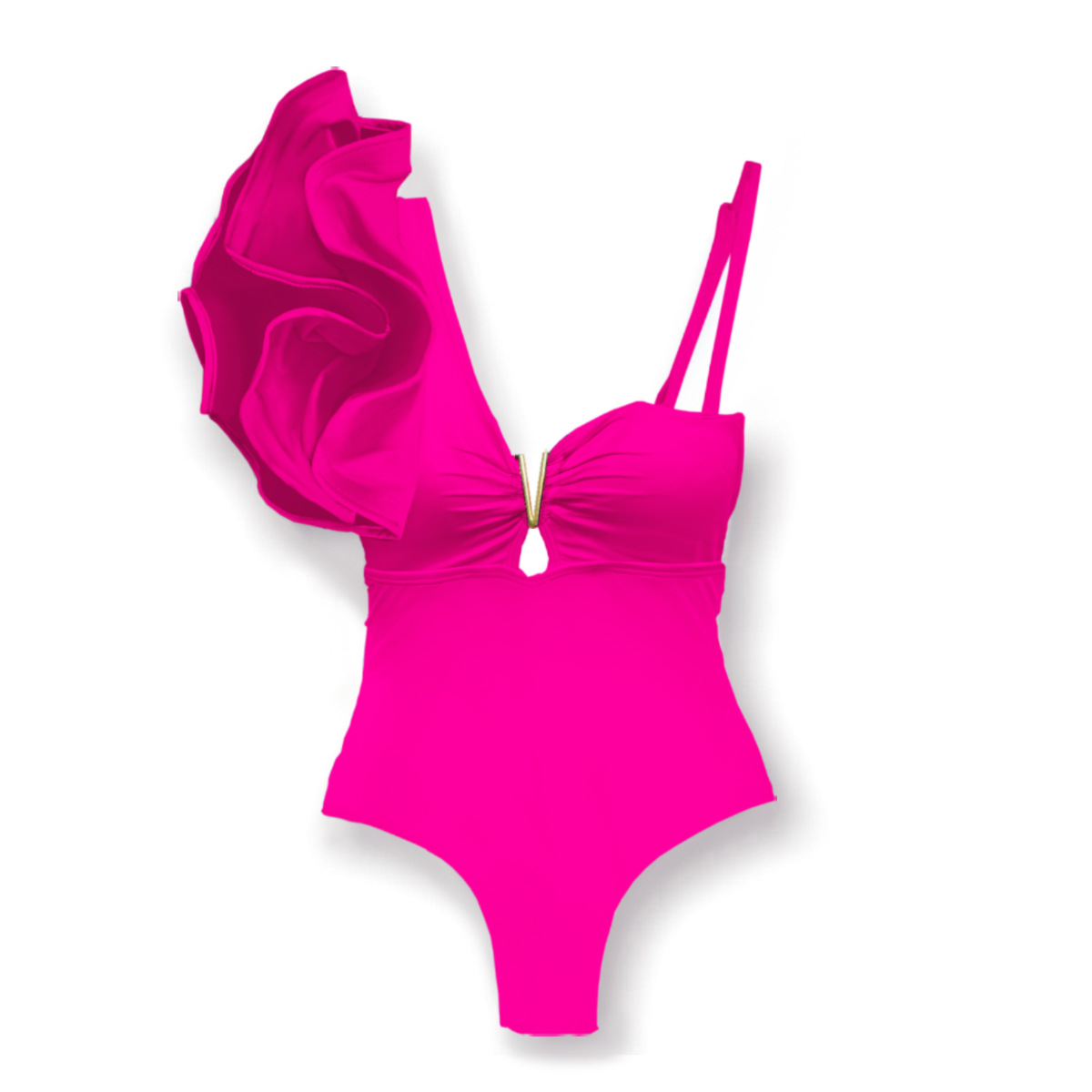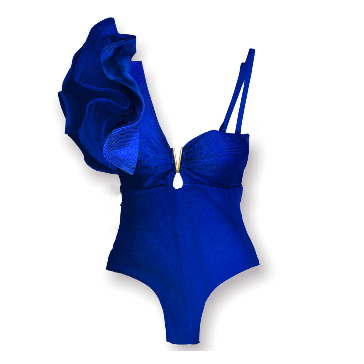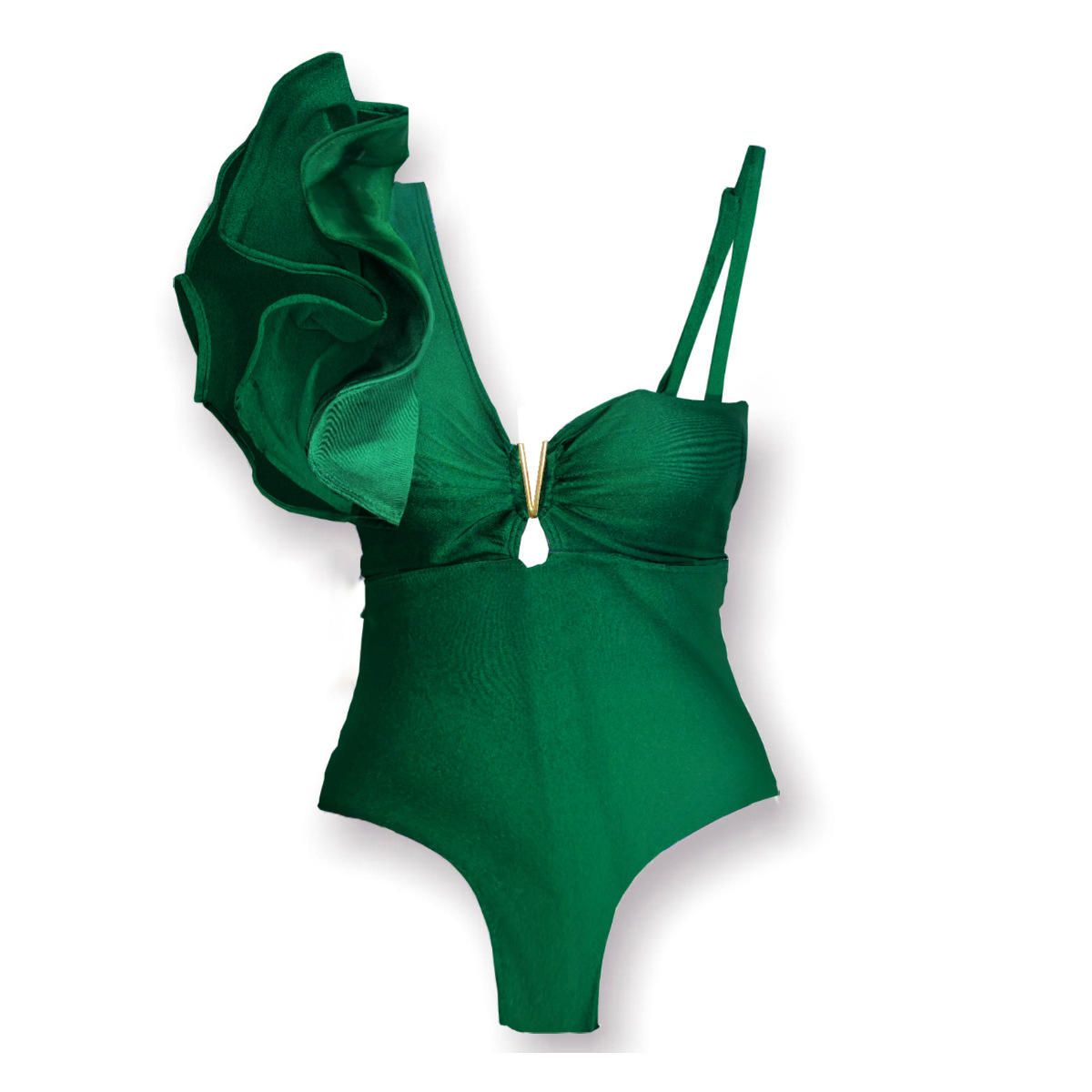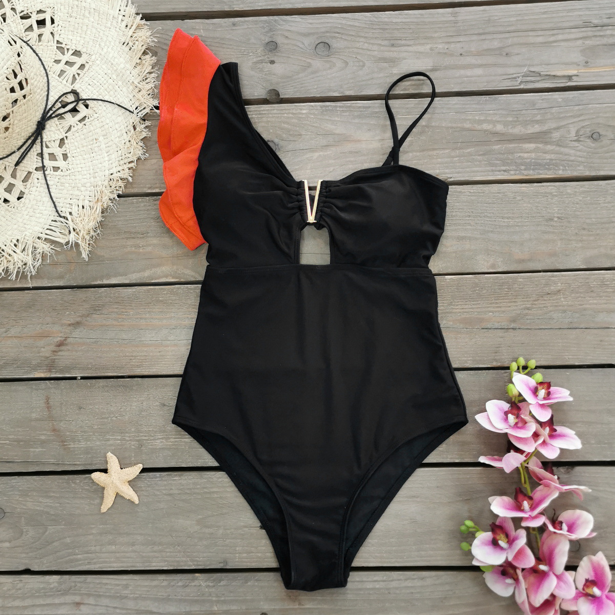 원 숄더 타이트 러플 원피스 수영복 여성 할로우 유럽 및 미국 크로스 보더 수영복 백리스 섹시 프린트 2025 새로운 스타일