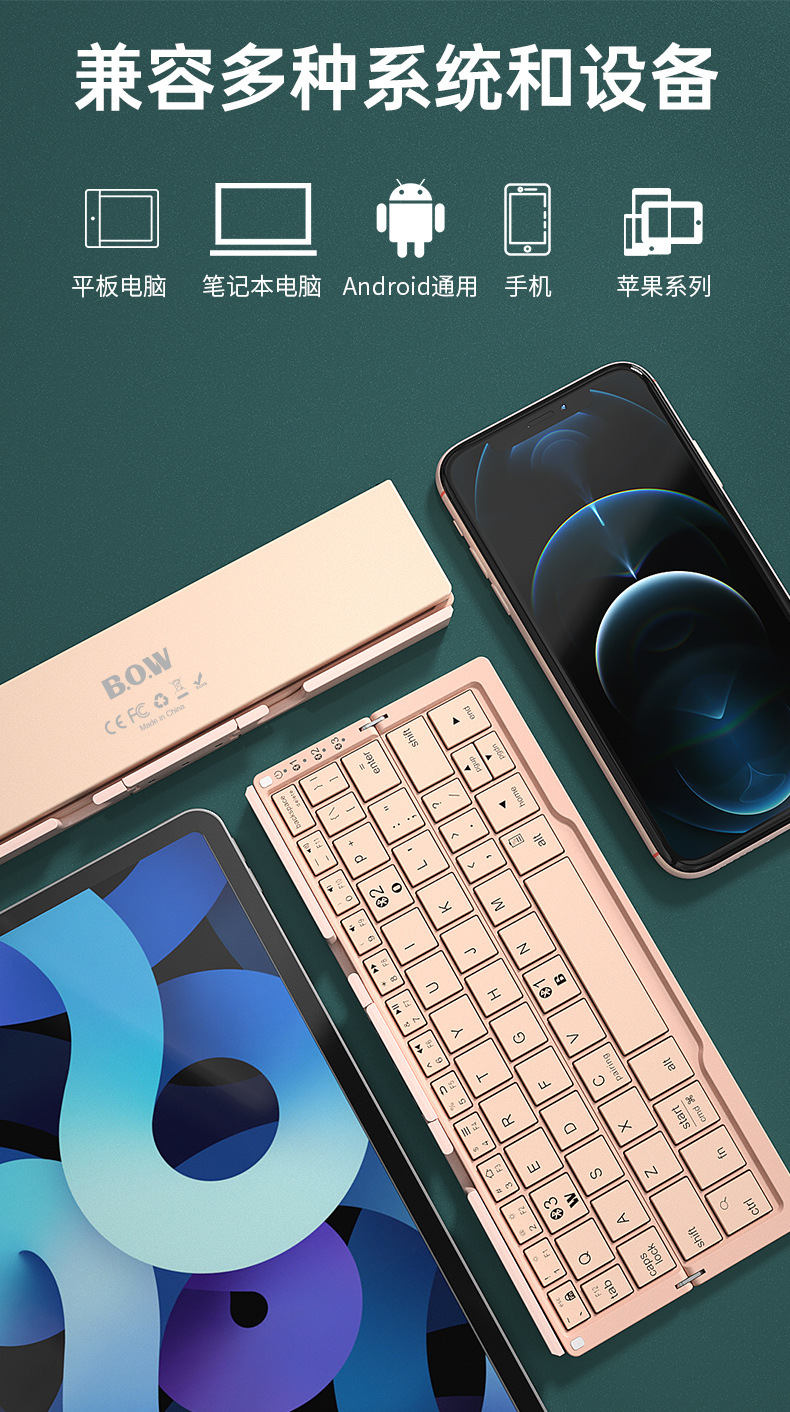 BOW 블루투스 접이식 키보드는 태블릿 노트북 사무실 휴대용 휴대 전화 무선 키패드에 연결할 수 있습니다