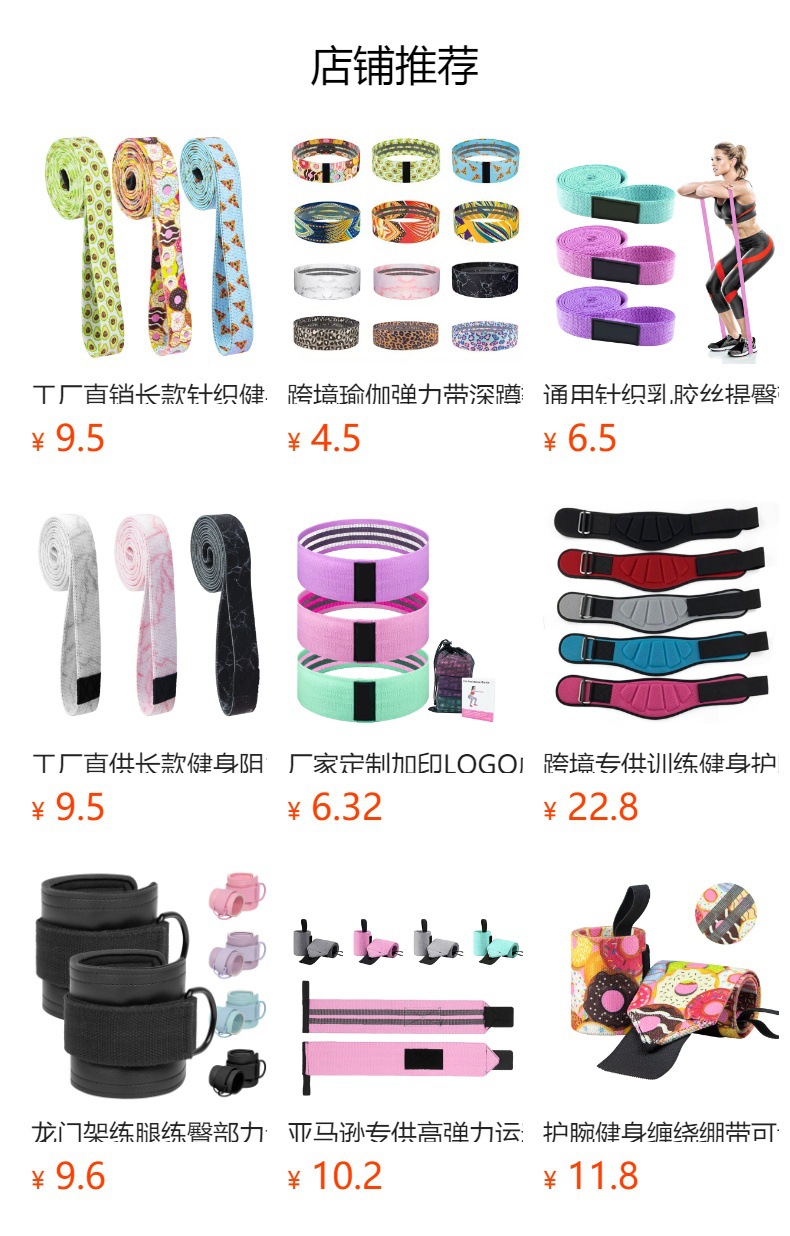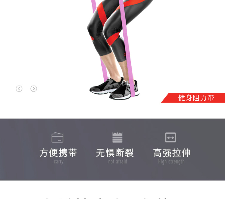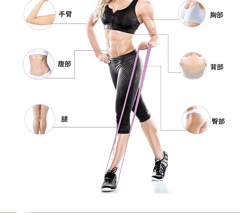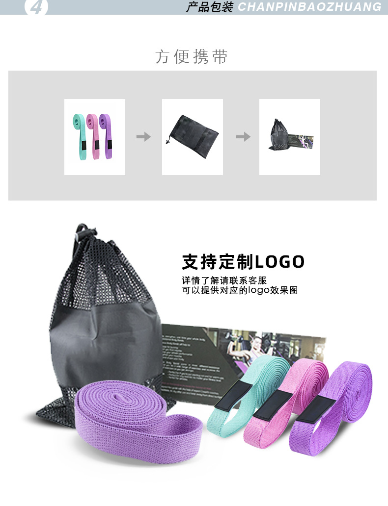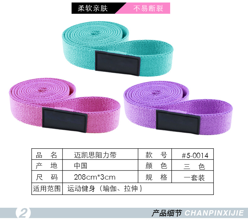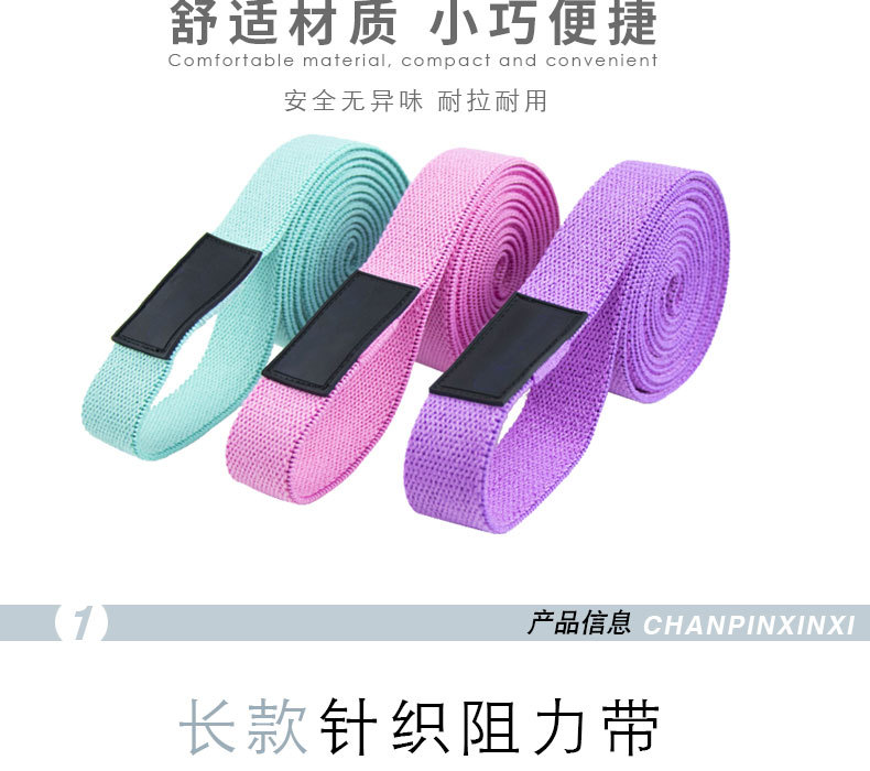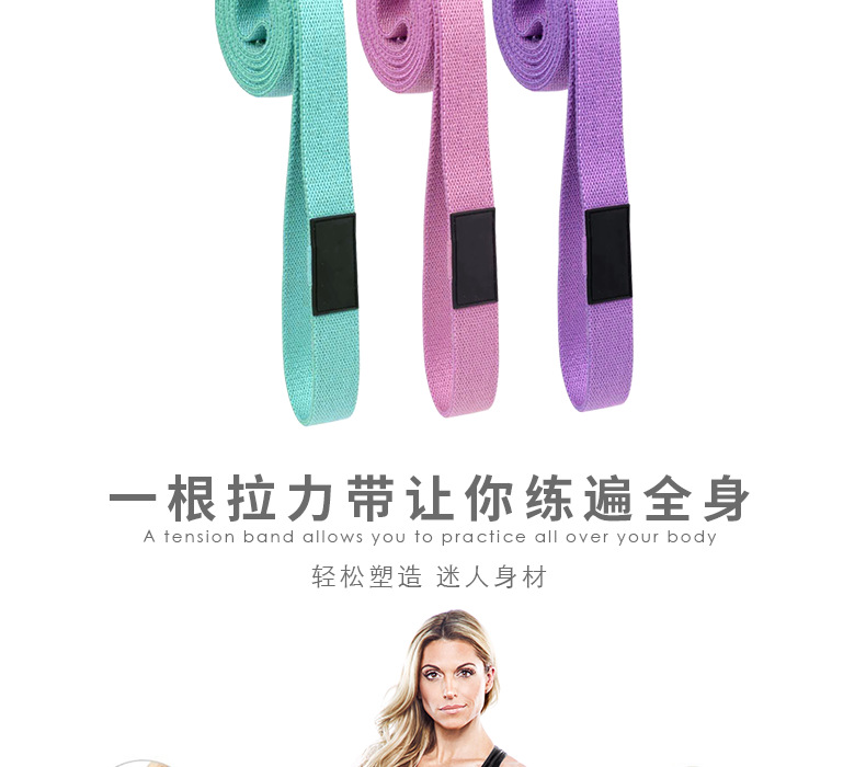 瑜伽健身阻力带 蓝粉紫翘臀圈 208cm*3cm 健身阻力带 瑜伽健身弹力带
