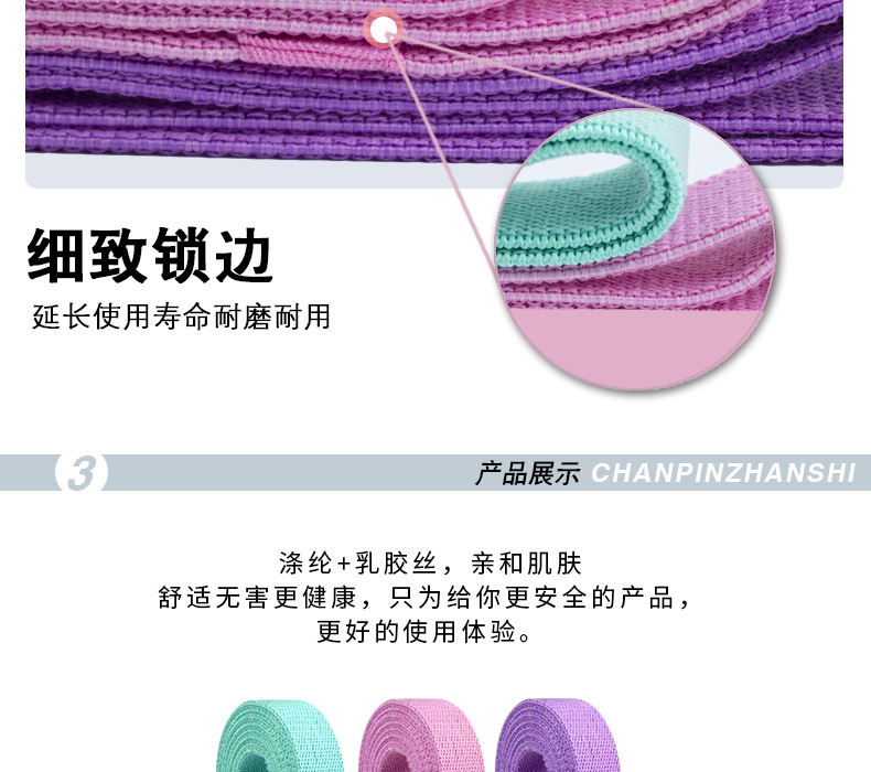 瑜伽弹力拉伸带 蓝粉紫拉力带 208cm*3cm 健身弹力带 健身训练阻力带