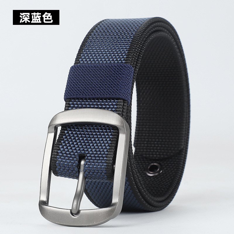 남성과 여성의 벨트 핀 버클 캔버스 벨트 캐주얼 커버 바지 한국식 트렌디 남성 학생 청소년 군사 훈련 야외